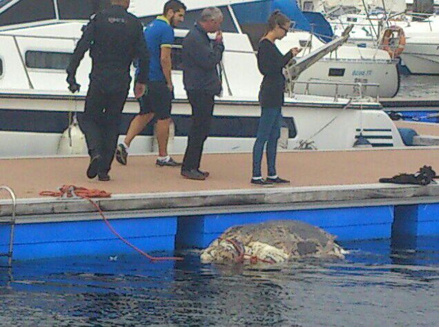 La tortuga fue trasladada al muelle del Náutico de Cabo de Cruz