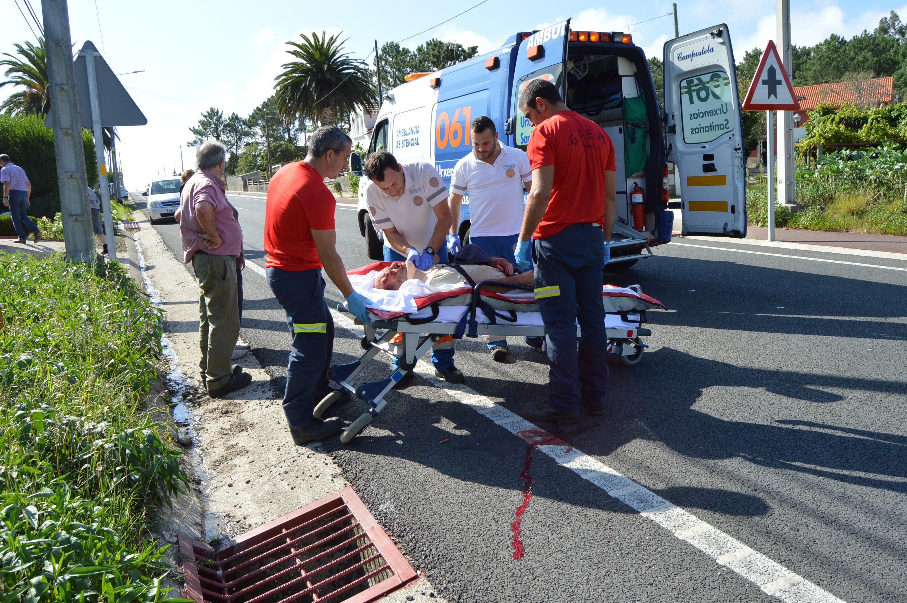 Una mujer relató que la víctima estaba inconsciente, pero que pasados unos minutos pareció volver en si. Un particular fue el que alertó al Centro de Atención de Emerxencias 112 Galicia, desde donde se movilizó hasta ese lugar a efectivos del Grupo de Apoio e Emerxencias Municipal (GAEM) de Ribeira y una ambulancia del 061 con base en el lugar de A Ameixida. Consiguieron inmovilizarlo y subirlo a una camilla para seguidamente proceder a su evacuación en el vehículo asistencial al área de Urgencias del Hospital do Barbanza.