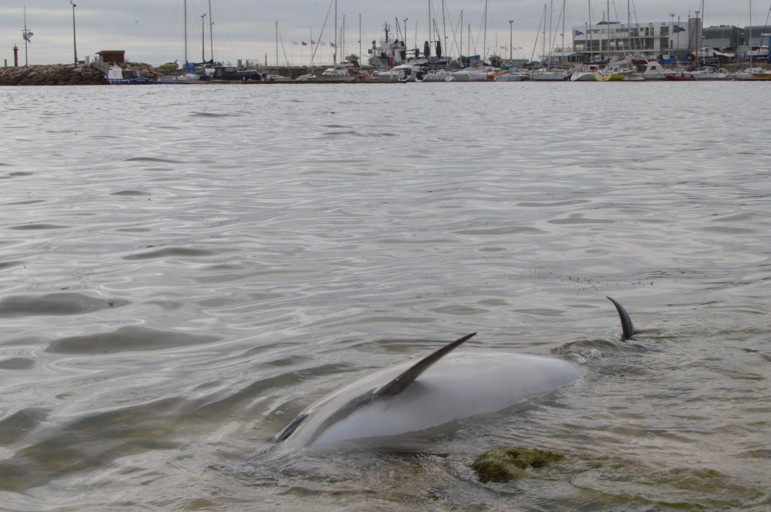 RIBEIRA – Localizan varado en la playa de Coroso el cádáver de una cría de delfín común