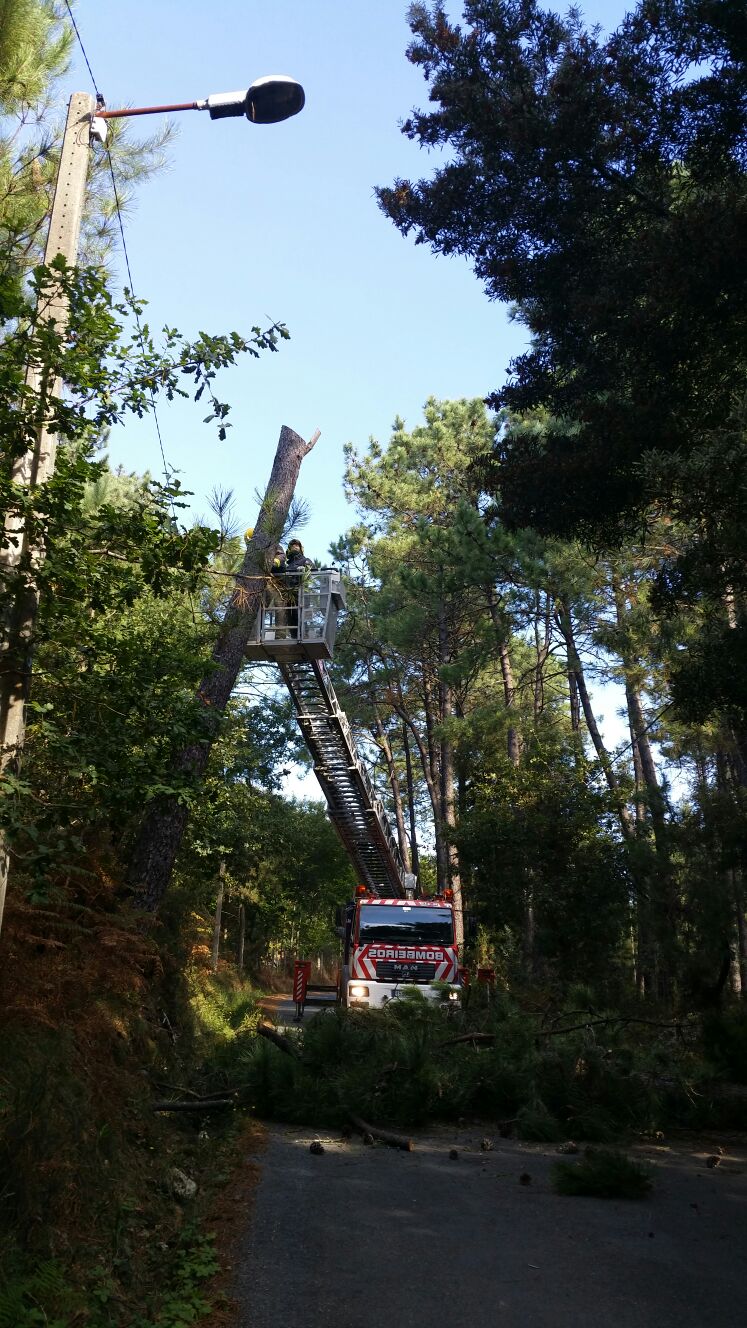 Ese árbol se encontraba inclinado sobre un vial y con un elevado riesgo de caer sobre un tendido eléctrico. Después de analizar detenidamente la situación y determinar la forma en la que iba a ser retirado con todas las garantías y seguridad, esos efectivos de emergencias comenzaron a cortar las ramas más altas y a trocearlo poco a poco, para lo que fue preciso utilizar el vehículo autoescala.