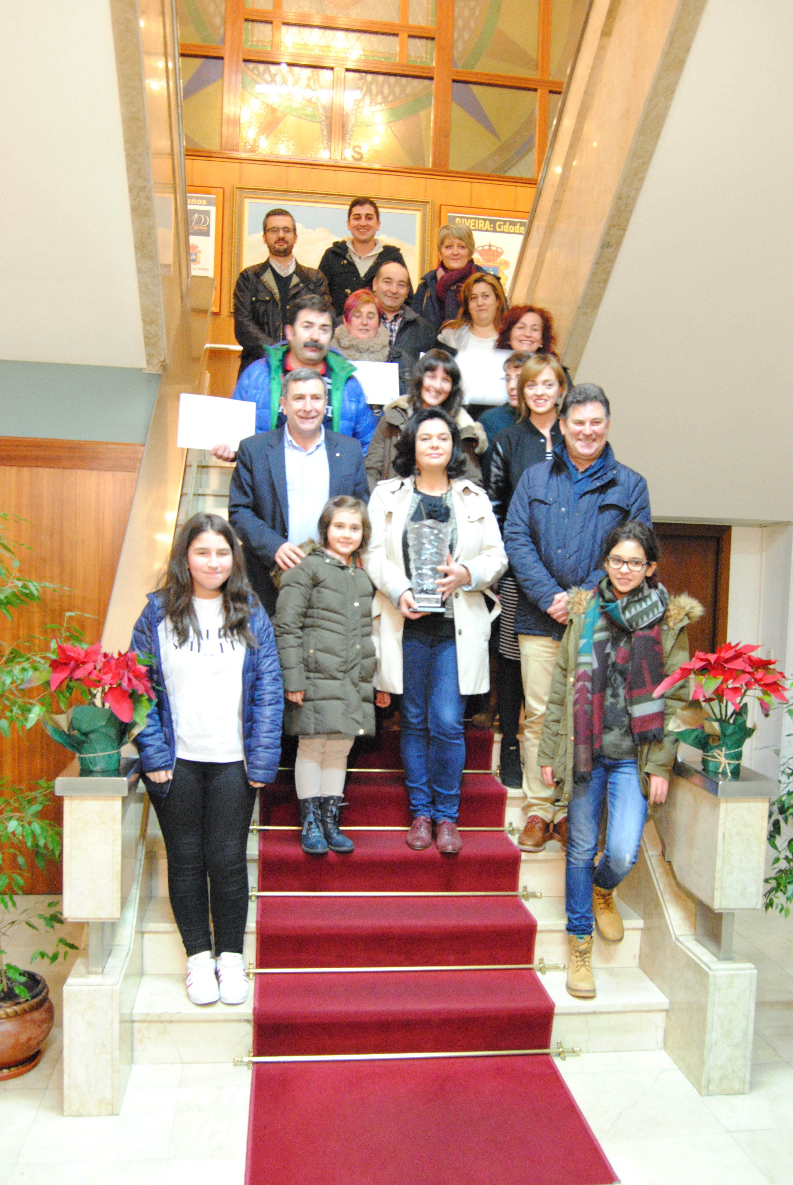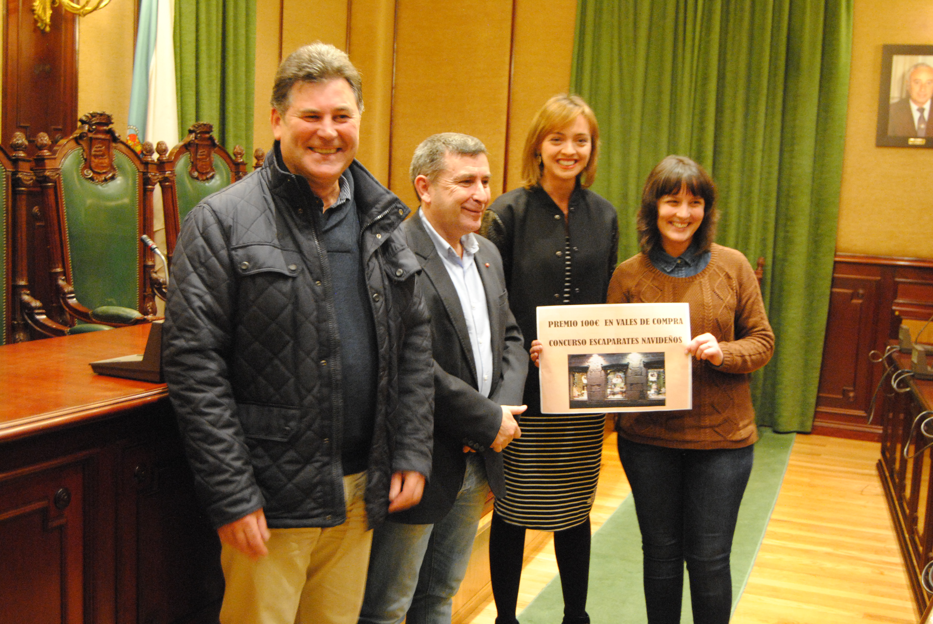El alcalde de Ribeira, Manuel Ruiz, la concejal de Cultura, Fabiola García, y el presidente de la asociación de empresarios de la capital barbanzana, Antonio Miranda, presidieron a primera hora de la noche de este jueves el acto de entrega del premio del concurso de escaparatismo de Navidad -asistieron representantes de 11 de los 21 comercios participantes-, que fue a parar a manos de El Rincón del Chocolate, que recogió su propietaria, Diana Muiños Paz; y el de decoración hostelera -acudió 1 de los 4 inscritos-, que quedó desierto, pero a los que se les entregó igualmente un diploma conmemorativo. El vale de 100 euros que se sorteaba entre los votantes se entregó a Elena Santamaría.