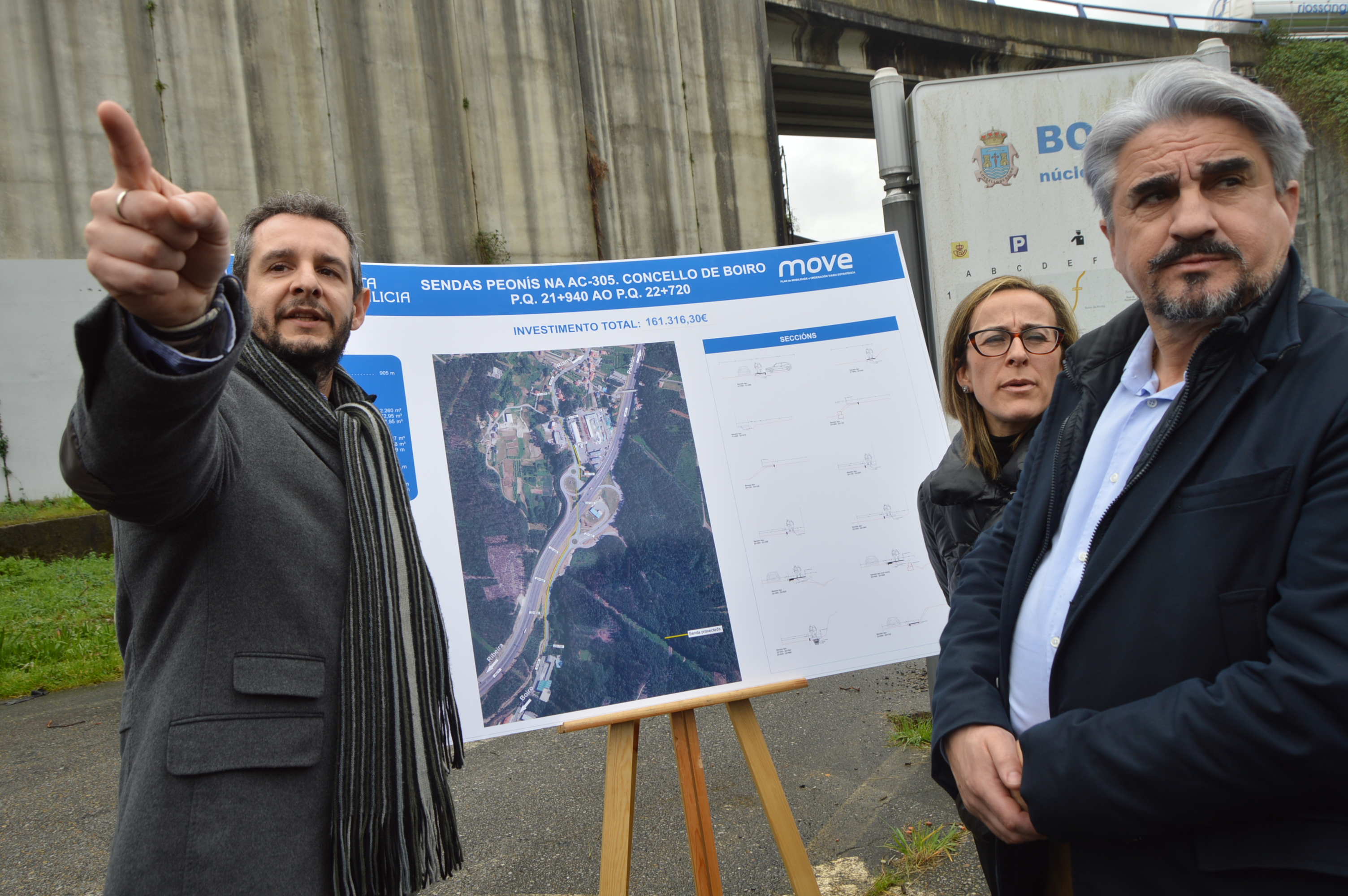 La conselleira de Infraestruturas, Ethel Vázquez, anunció que el Ejecutivo gallego desarrollará una nueva actuación de mejora de la seguridad viaria en la carretera AC-305 con una inversión de 560.000 euros, con el refuerzo del firme y la mejora de las travesías. Lo hizo aprovechando la visita de ayer a Boiro para dar a conocer que 30 empresas presentaron ofertas para construir una senda peatonal de 920 metros de longitud en ese vial entre Vilariño, a la altura de las instalaciones de Cruz Roja, y la travesía del casco urbano. Irá por el margen izquierdo en el primer tramo hasta el paso inferior con la AG-11 para pasar al otro margen hasta el kilómetro 22 en que regresa a la izquierda. E indicó que se prevé que en abril se inicien los trabajos que cuentan con presupuesto de licitación de 161.316 euros.