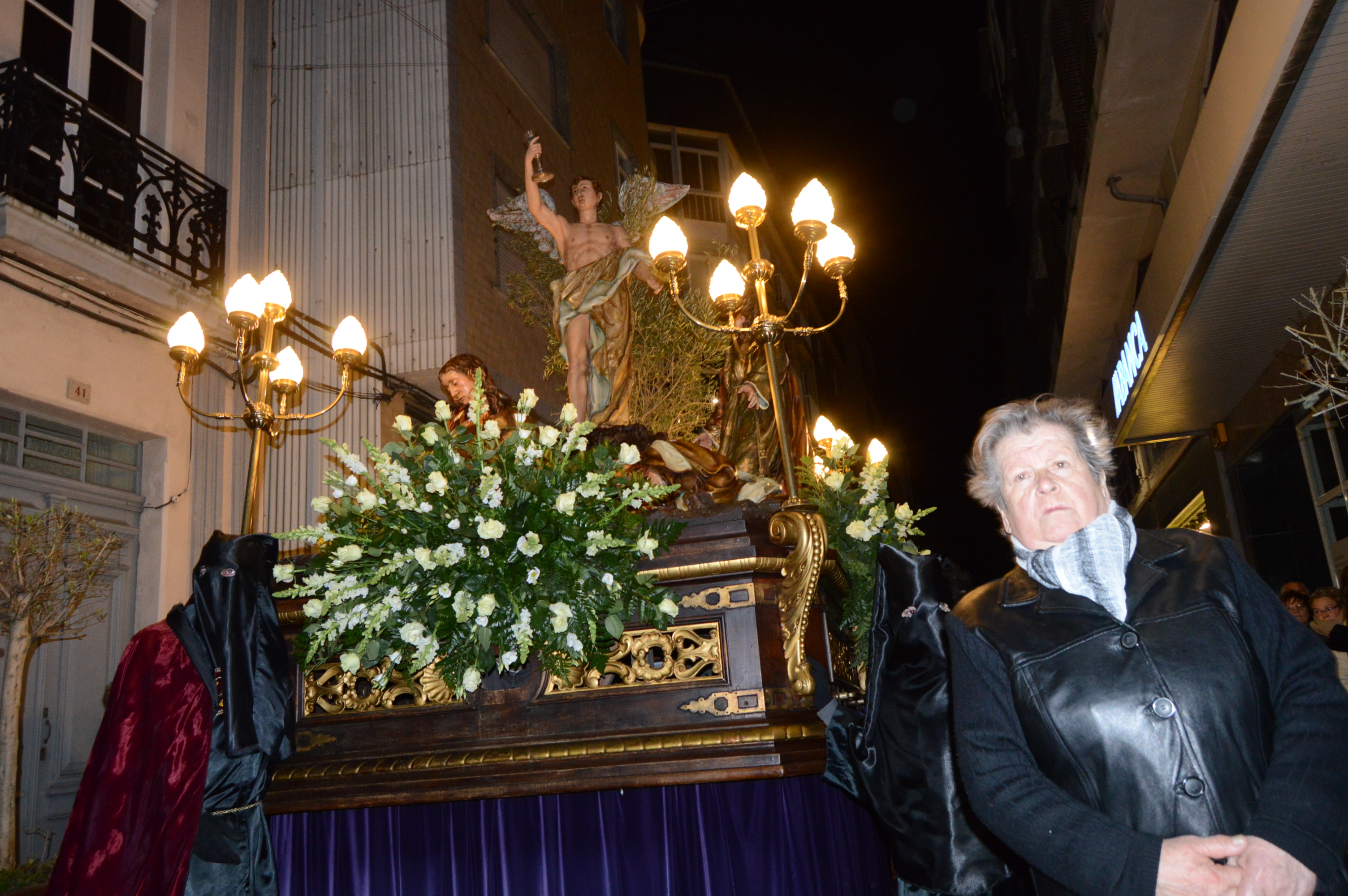Alrededor de 80 cofrades y costaleros, así como cientos de vecinos y autoridades, acompañaron el miércoles la procesión del paso de Jesús en el Huerto de los Olivos, que recorrió durante una hora y media el centro de la ciudad de Ribeira al ritmo de los acordes y, sobre todo, los tambores de la Banda Santísimo Cristo de la Buena Muerte de Ferrol y de la Banda de Negreira. Después de que durante los últimos años se viniese detectando que esta procesión, que es la más multitudinaria que sale durante la Semana Santa de la capital barbanzana, se hacía casi en penumbra, salvo la propia imagen, se sustituyeron los tradicionales farolillos que llevan los cofrades por velas eléctricas, y así se ganó en iluminación y vistosidad del desfile. Al final del recorrido, en la Rúa Cristóbal Colón, las bandas hicieron sonar los himnos de Galicia y de España mientras se guardaba la imagen, pero también interpretaron otras piezas en su salida de la ciudad y en medio de los aplausos de los asistentes.
