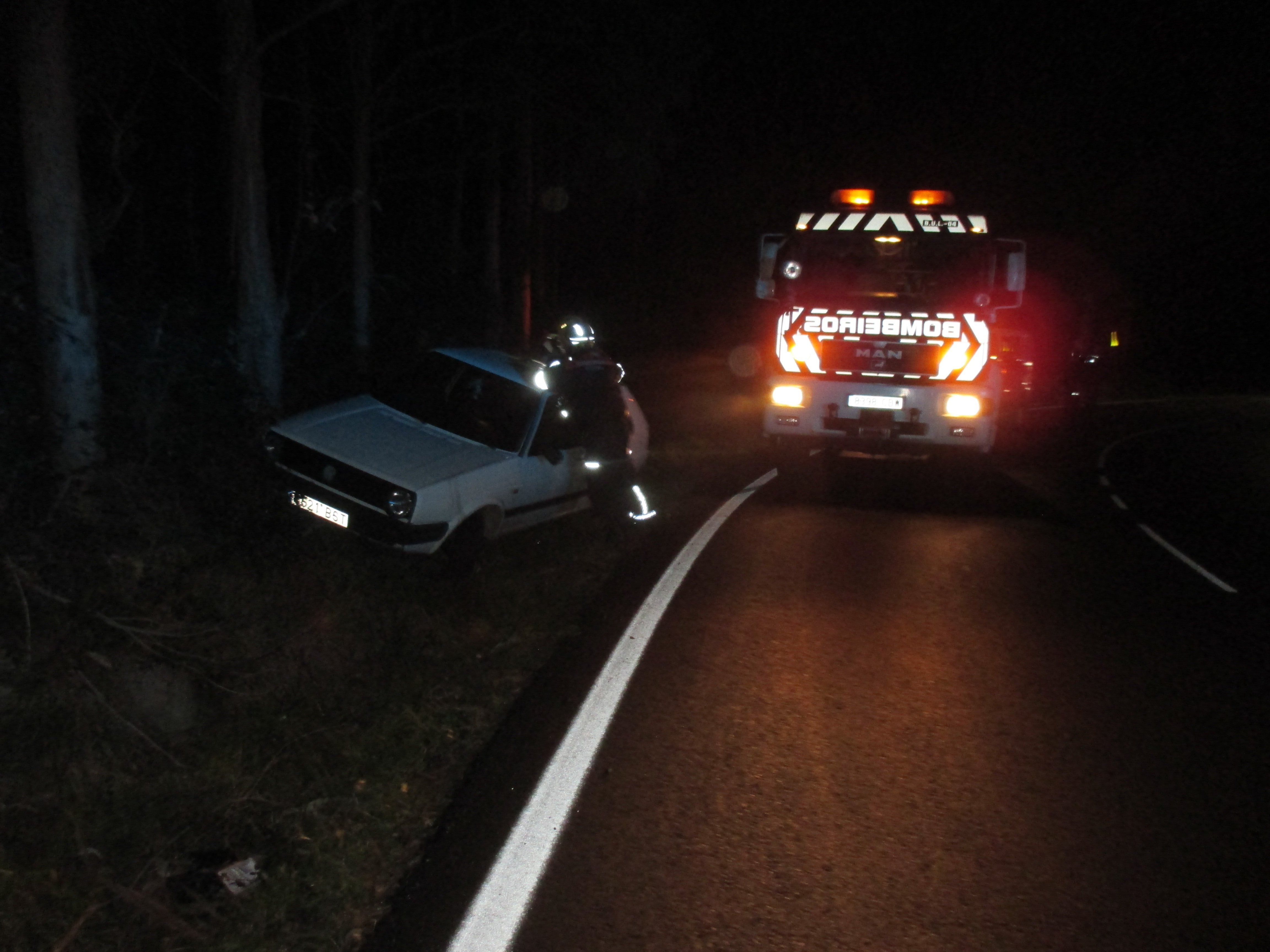 La carretera de titularidad provincial DP-7301, entre las rotondas de Xarás y del cruce de O Vilar, en Ribeira, fue escenario a las ocho y diez de la tarde de ayer de un accidente de tráfico consistente en una salida de vía por el margen derecho y tras una curva a la izquierda de un Volkswagen Golf 0621-BST. El conductor, cuya identidad responde a las iniciales B.B.L., de 47 años y de Boiro, resultó ileso, no así su esposa, M.C.T.L., que tuvo que ser evacuada por una ambulancia del 061 al Hospital do Barbanza. El aviso inicial alertaba de que podría haber atrapados, por lo que se movilizó a los Bomberos del parque comarcal ribeirense, que cuando llegaron sus efectivos ya se encontraron a los dos ocupantes fuera del coche, porloque no hubo que excarcelar. Al lugar del suceso también acudieron la Policía Local, el Grupo de Apoio e Emerxencias Municipal (GAEM) y la Guardia Civil de Tráfico.