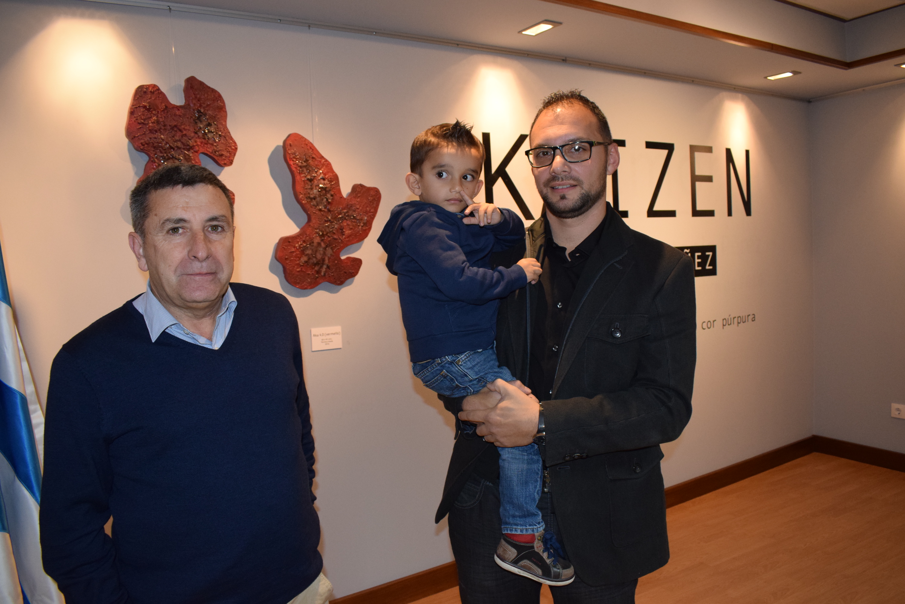 El centro cultural Lustres Rivas, de Ribeira, acogió a primera hora de la noche de este viernes el acto de inauguración de la exposición “Kaizen… porque a vida é un soño de cor púrpura”, de Fernando Yáñez y su hijo Hugo, que recibió el respaldo de la ciudadanía con una multitudinaria asistencia. Tras la proyección de un audiovisual sobre las obras se procedió a la realización de una visita y de las intervenciones de los autores, que explicaron el proceso de elaboración y desvelaron que con la palabra que encabeza el título de la muestra se expresa “mejora continua”. Fernando anunció que 2 de las 24 obras de la colección -“Aka 3.0 (vermello)” y “Aka 4.0 (vermello)”- las donará al Concello, pasando a formar parte de su inventario de bienes artísticos. El alcalde, Manuel Ruiz, le agradeció ese gesto y dijo de él que aunque es un lugués afincado en Brión, lo considera un ribeirense “porque traballa por Ribeira”.
