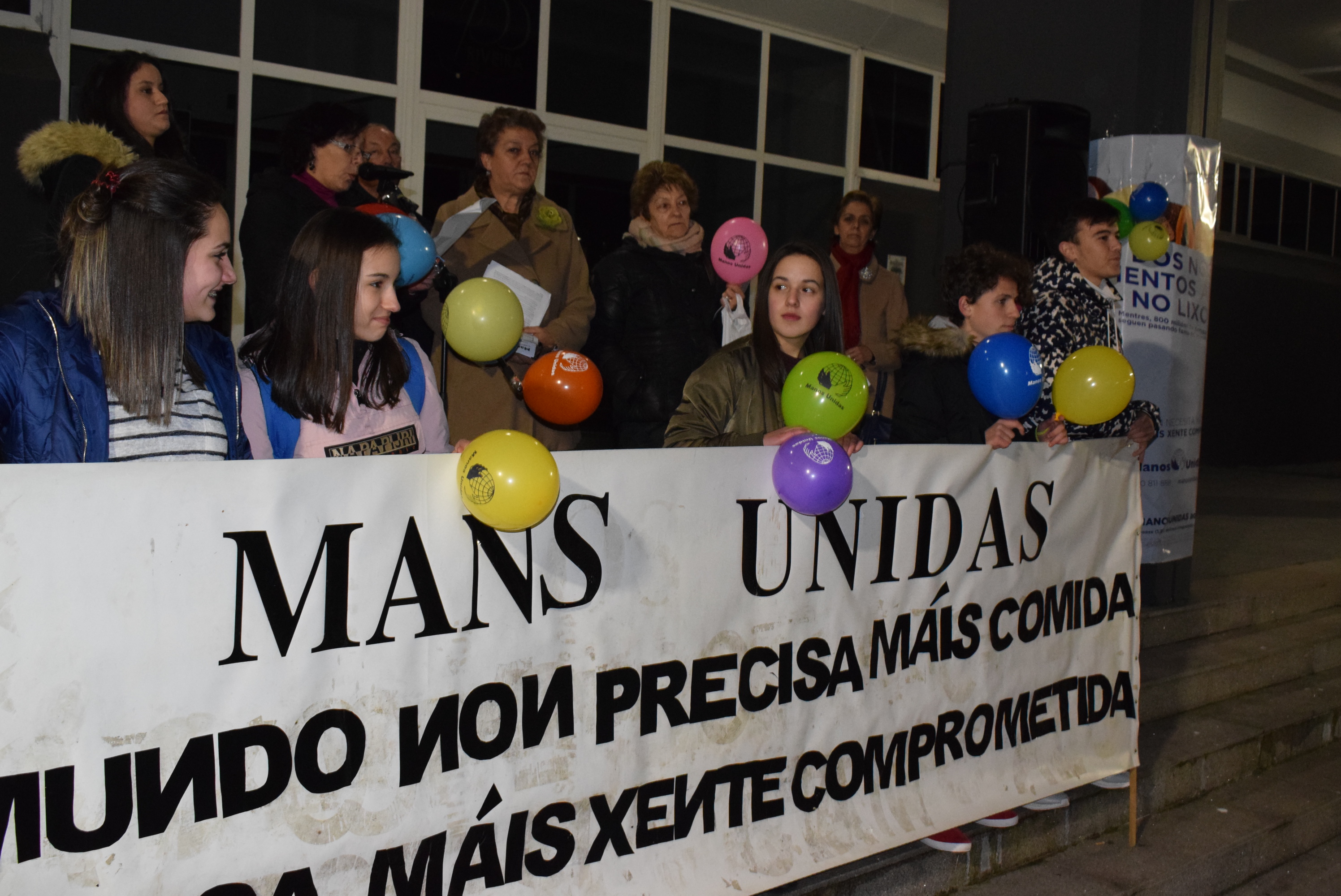 La Praza do Concello de Ribeira acogió a última hora de la tarde de este viernes la tradicional concentración y lectura del manifiesto de Manos Unidas, que se desarrolló bajo el lema de que el mundo no necesita más comida, sino más gente comprometida. Desde la delegación local de esta ONG se indicó que un tercio de los alimentos acaba en la basura, mientras 800 millones de personas siguen pasando hambre en el mundo. Entre las decenas de asistentes a este evento se encontraban el alcalde, Manuel Ruiz, y Sus Freire, que aunque es ya estuvo en corporaciones anteriores, entró recientemente como concejal popular tras la marcha de su compañera Fabiola García a la Xunta.
