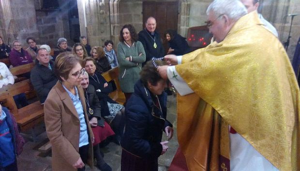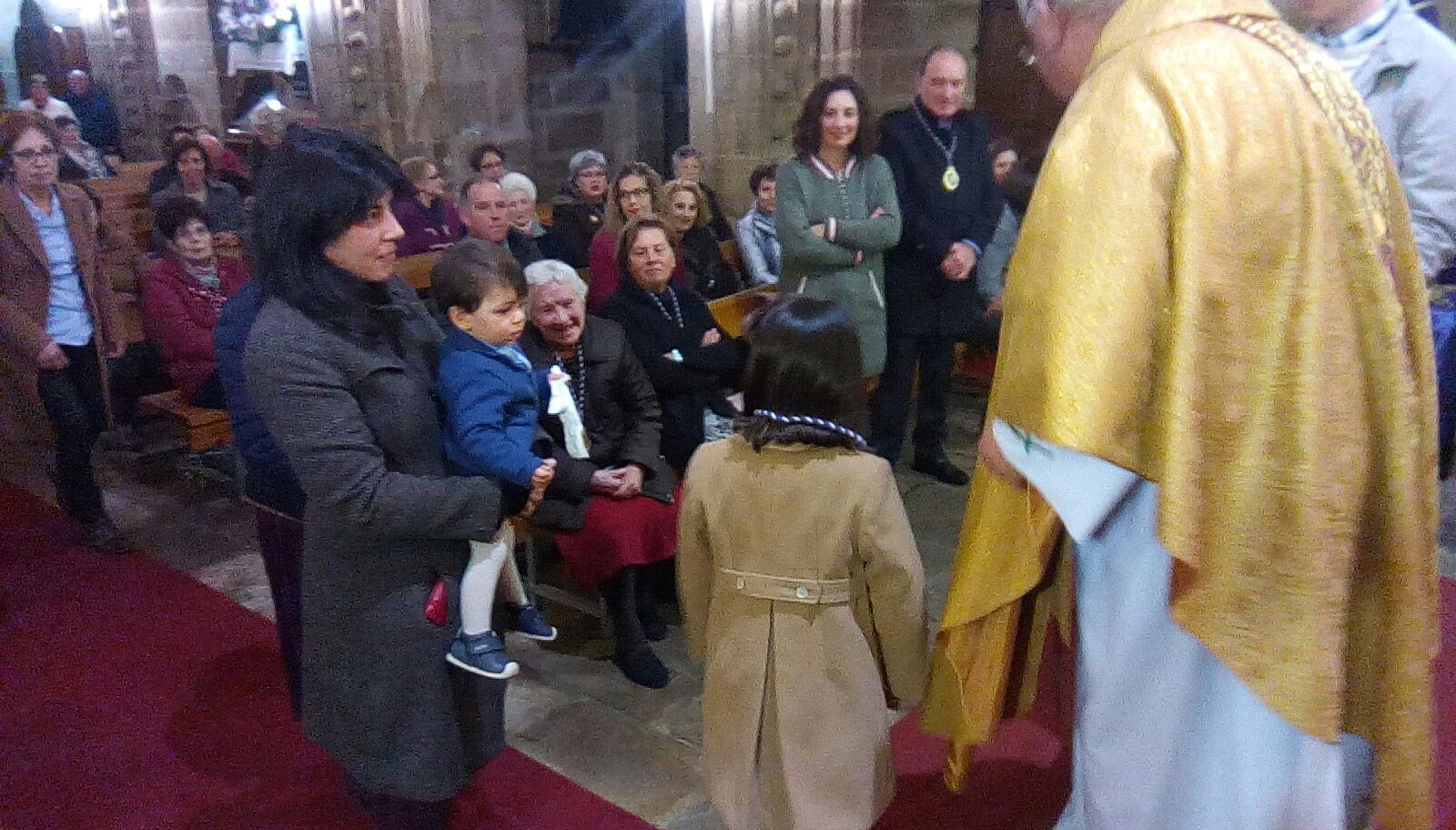 La Irmandade da Paixon de Cristo de Rianxo inició este sábado, día 1 de abril, su programación de la Semana Santa con el acto de imposicion de medallas a los nuevos miembros de la cofradía. En esta ocasión fueron doce menores y dos adultos, con lo que casi se alcanza la cifra de los 300 cofrades, una cifra considerable teniendo en cuenta que esta confraría nació oficialmente, con la aprobación del Arzobispado de Santiago de Compostela en el año 2011 con la finalidad de promover y protexer las imágenes y los actos de la Semana Santa de la villa rianxeira. En la nueva relaciñon de miembros de la Irmandade da Paixon de Cristo de Rianxo sobresale la incorporación de Paio Varela, que con sus 11 meses de vida se ha convertido en el cofrade más joven de la misma. Los próximos actos se desarrollarán los días 5, 6 y 7 de abril con el triduo en honor a Nosa Señora dos Dolores, que consistirá en misas, siendo la del último día de carácter solemne y seguida de procesión. El próximo domingo, día 9 de abril, tenfrá lugar a partir de las once de la mañana la procesión de Ramos desde la iglesia parroquial de Santa Columba hasta l capilla de Nosa señora da Guadalupe, donde tendrá lugar la bendición de ramos y a su conclusión se iniciará el regreso al punto de partida para la celebración de la misa. A continuación os ofrecemos algunas de las imágenes que nos ha dejado el acto de entrega de las medalla a los nuevos cofrades y que esperamos que sean de vuestro agrado…