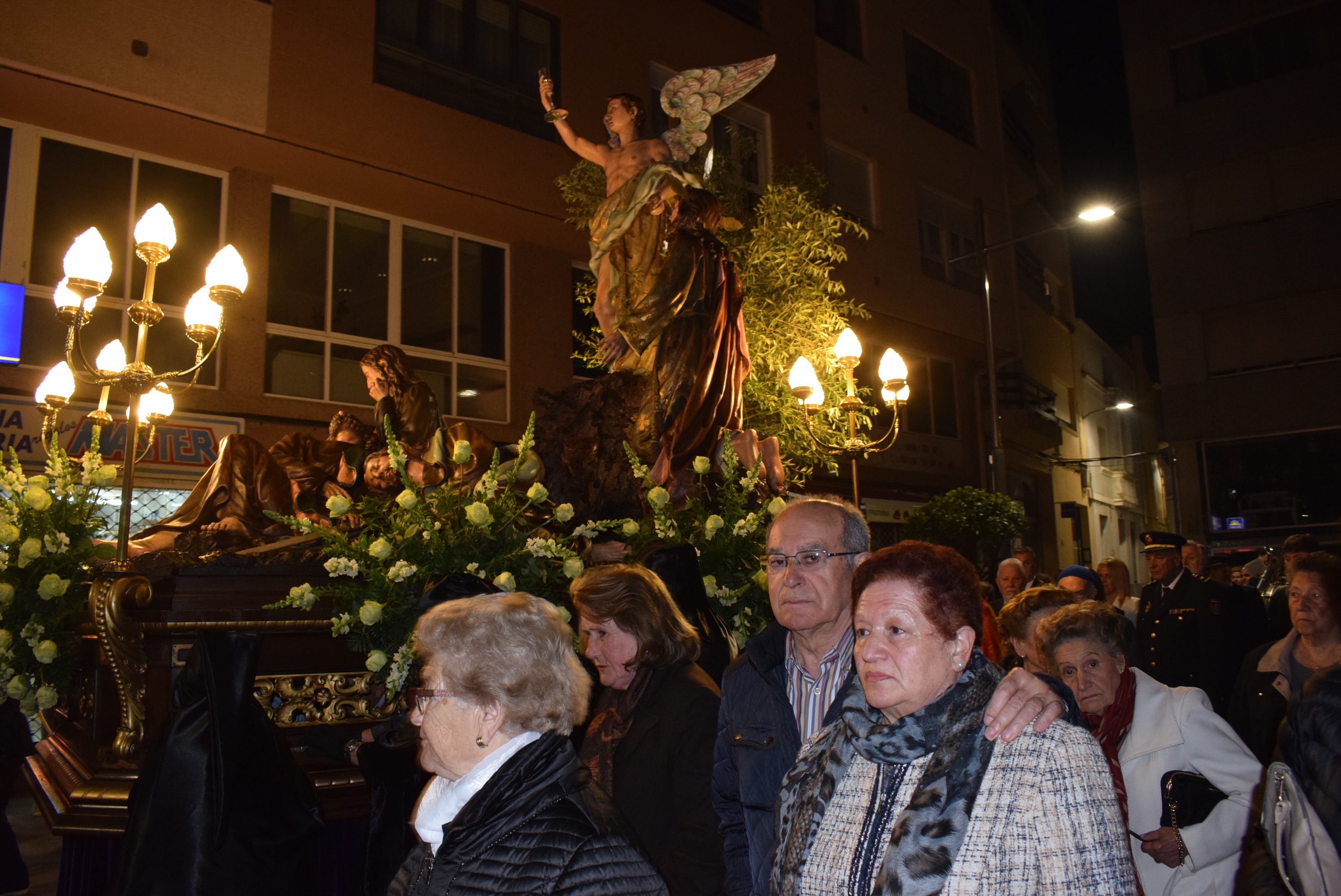 Las céntricas calles de Ribeira acogieron desde las diez de la noche de este miércoles la tradicional procesión del Paso “Xesús na Horta das Oliveiras”, que estuvo acompañada por alrededor de 80 integrantes de la Cofradía do Paso, incluyendo a los capuchinos y costaleros, así como las bandas de música de Negreira y Santísimo Cristo de la Buena Muerte de Ferrol, además de varias autoridades locales y varios cientos de personas. El recorrido les llevó por la Rúa de Galicia, Romero Ortiz, Malecón, Praza da Concordia y regreso al que también fue el punto de partida en la Rúa Cristóbal Colón. También cabe destacar la eficacia del dispositivo de seguridad que se motó para garantizar el buen desarrollo de la procesiñón y en el que participaron las Policías Local y Nacional, así como el Grupo de Apoio e Emerxencias Municipal (GAEM) y voluntarios de la agrupación local de Protección Civil riveirenses.
