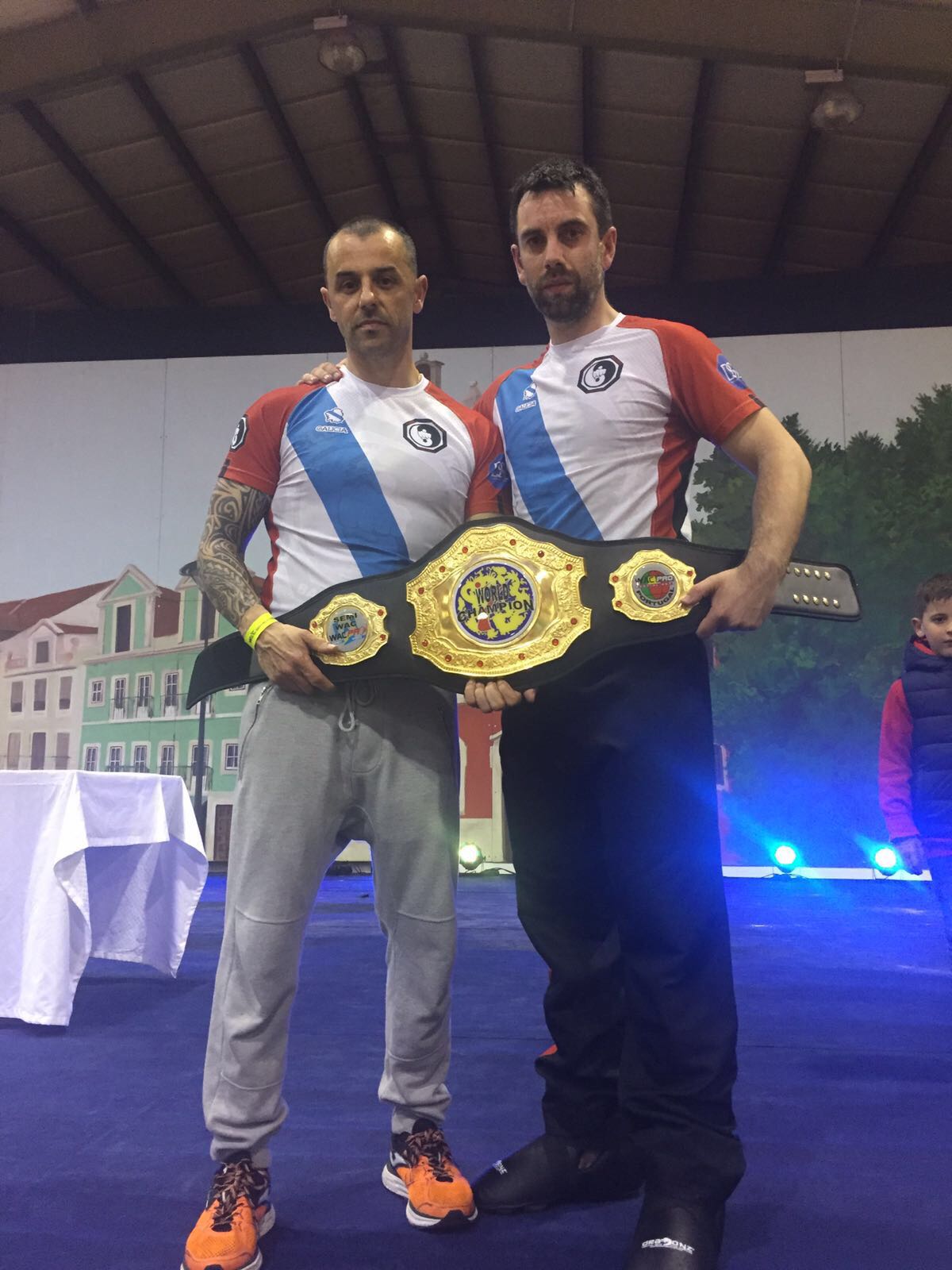 El Club Kempo Barbanza regresó el pasado fin de semana del 7º Mundial WAC, que se celebró en la localidad portuguesa de Caldas da Rainha. «>El combinado ribeirense encabezado por Miguel Pérez consiguió un total de 17 medallas de oro, 24 de plata y 24 de bronce para un total de 25 competidores. Además, Iván Parada se alzó con el cinturón de Campeón del Mundo Pro en la modalidad de Semi Contact contra el Inglés Tom Younger por un ajustado 8-7, combate pactado a 5 asaltos de 2 minutos cada uno. Los deportistas del Club Kempo Barbanza compitieron en las modalidades de katas manos vacías, armas y katas por Equipos, combate al punto y combate continuo. Este Torneo está considerado como el mayor evento en cuanto a participantes se refiere. De hecho, este año había 6.202 inscritos en todas las modalidades y en representación de 62 países, como Líbano, Rumanía, India, EE.UU, Azerbaiyán, Inglaterra, Marruecos, Australia, Francia, Portugal, España y un largo etcétera.