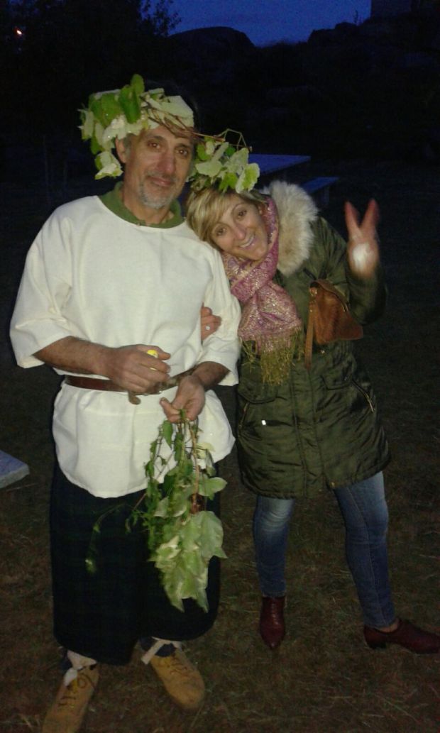 La pareja juró fidelidad con las manos apoyadas en una piedra, símbolo de la fortaleza, y tuvo lugar la bendición de las tierra con vino y pan. Tampoco faltaron en la ceremonia las velas y anillos del compromiso, además de los pétalos de flor que les arrojaron en señal de júbilo los invitados vestidos de castrexos. Otro ritual consistió en saltar por encima de una escoba, con la que la madrina barrió de un lado a otro en señal del cambio del cambio del pasado al futuro. La celebración continuó con una queimada y unos aperitivos que se sirvieron en el Museo Primeiras Letras do Barbanza. Se espera repetir la experiencia el 17 de mayo durante la Romaría das Letras Galegas. Este lunes siguió la romería con ofrenda de un ramo floral en el Cruceiro dos Devanceiros a cargo de la australiana Susan Temple, que lleva cinco años afincada en Portomarín y que es una gran aficionada al mundo castexo, e iba caracterizada como un personaje de esa época. Su pareja, el lucense Luis Cabanela, habló de maios y ritos. No faltaron la comida popular bajo una carpa, una lectura de versos maios y las visitas al museo y a la Aldea Esquecida.