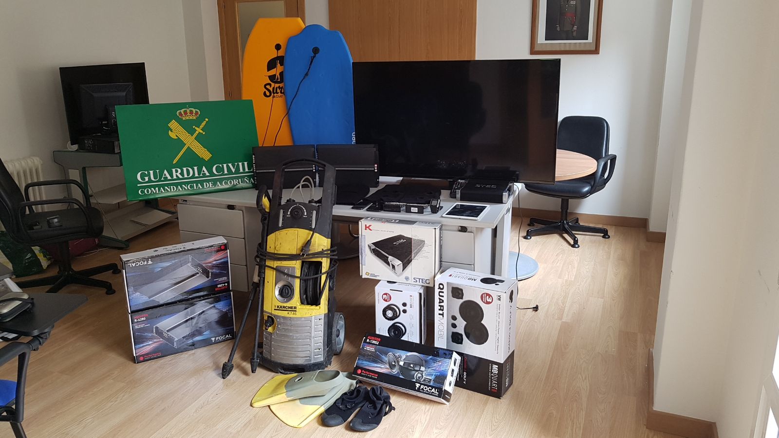 La investigación se inició a principios de marzo pasado, cuando la Guardia Civil tuvo conocimiento de los robos e inició las pesquisas encaminadas a la localización de los autores, realizando múltiples seguimientos. Durante la operación se efectuaron dos registros en domicilios de Noia, donde se pudieron intervenir más de 200 objetos entre teléfonos móviles, tabletas, ordenadores, equipamientos de buceo, equipos de música, herramientas de uso doméstico y numerosos enseres, todos ellos procedentes de los delitos mencionados. Los ladrones utilizaban sus propios vehículos para trasladarse hasta los lugares donde tenían la intención de delinquir, no sin antes haberse asegurado de que las viviendas estuvieran vacías y libres de ser descubiertos, por lo que esa tranquilidad les permitía incluso comer o beber mientras actuaban.