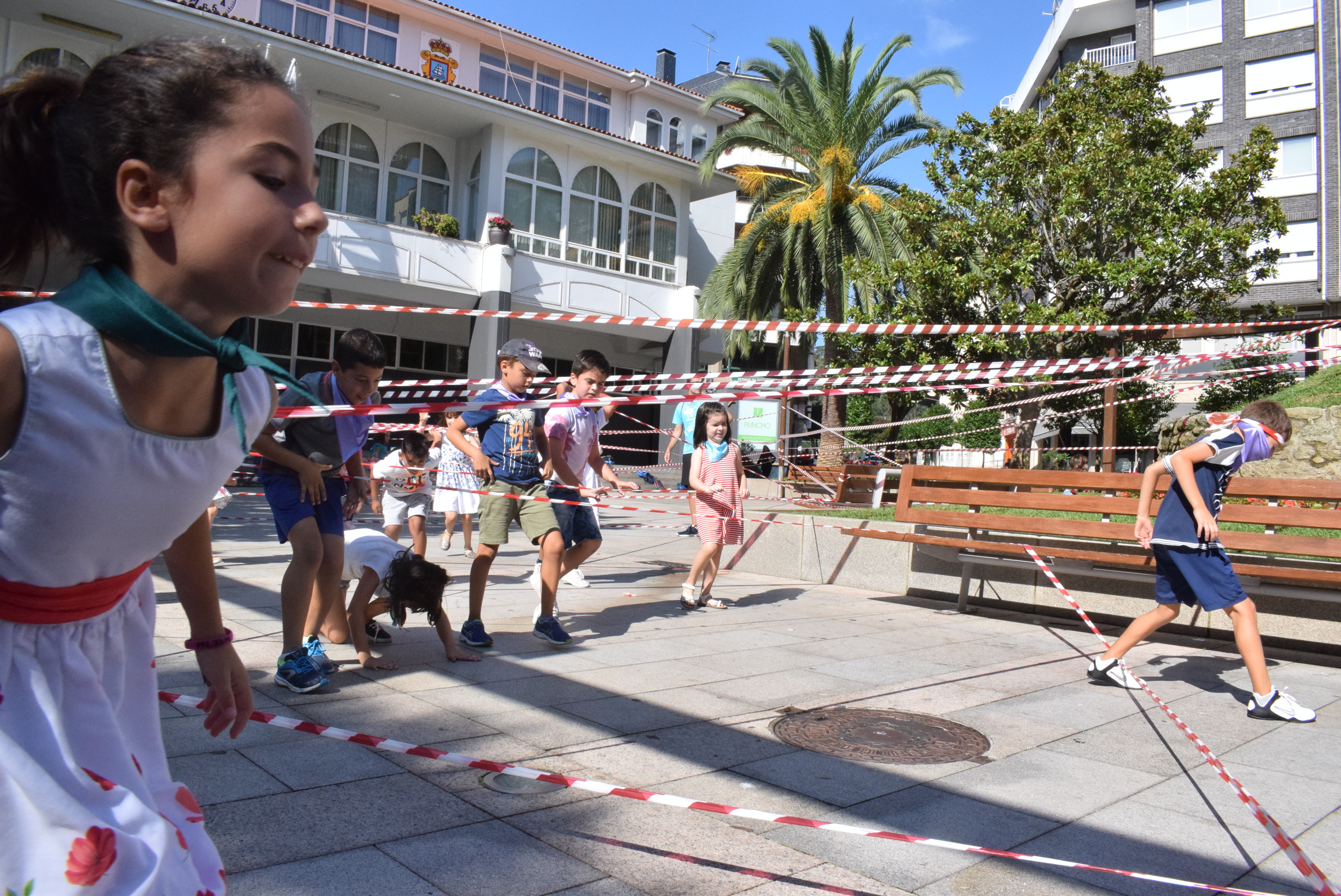 Ribeira acogió este viernes la clausura de la primera fase del proyecto “La Ciudad del Mañana”, que comenzó el pasado 26 de diciembre en Rianxo, continuó por Ames, Verín, A Pobra do Caramiñal y Mondoñedo, hasta llegar a la capital barbanzana. Este cierre llegó con el que fue el elemento estrella de estos meses, la cinta de balizaje, que adornó la Praza do Concello ribeirense, que fue invadida por varias decenas de niños participantes en la actividad.