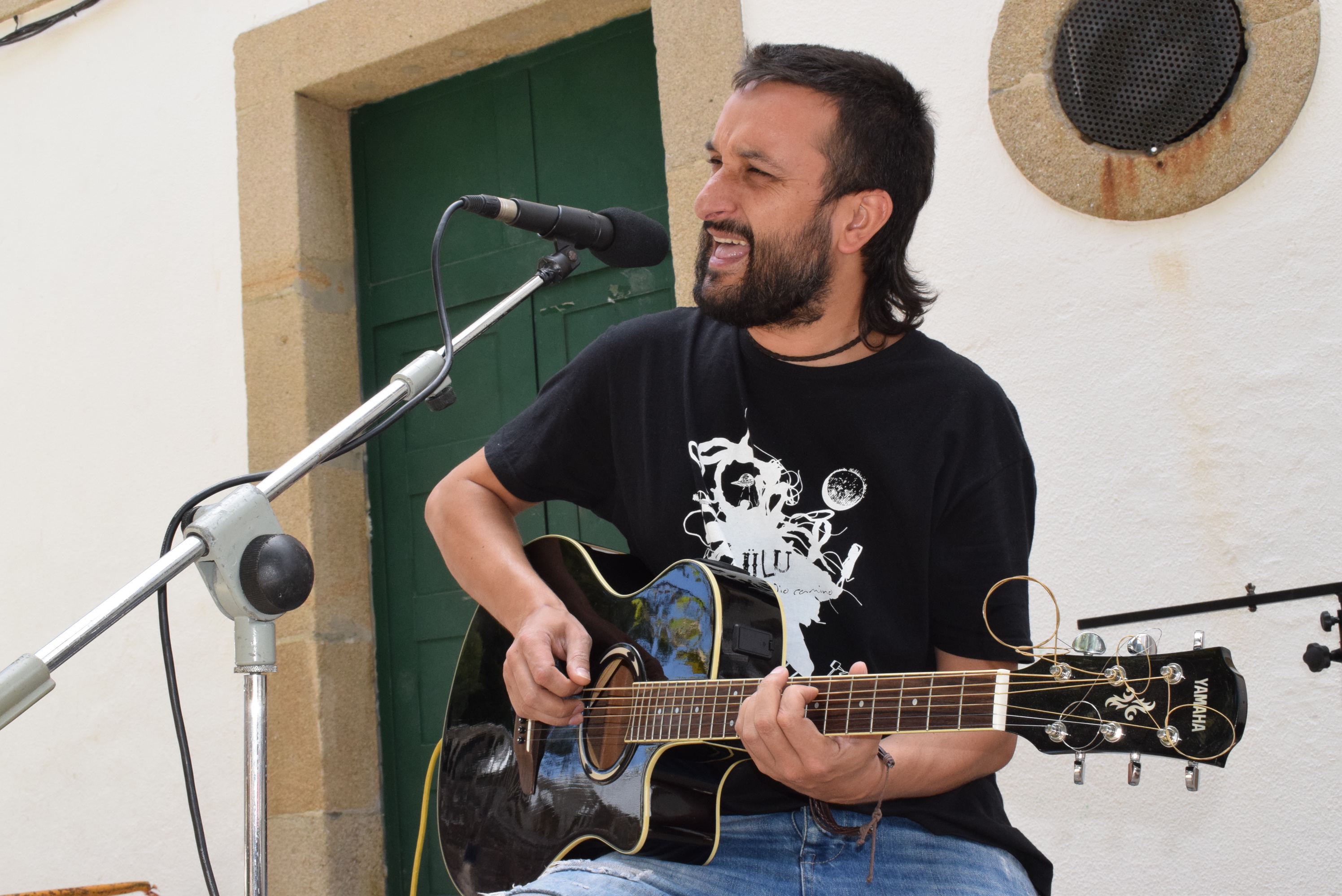 Lülu, exmiembro del grupo Forraje, ofreció este sábado en sesión vermú un concierto acústico en el Campo de Arriba de Rianxo. Fue en una sesión vermú dentro de las actividades incluidas en el cartel de la celebración de la Minijuadalupe, organizada por la comisión de juadalupeñas que están muy implicadas en los preparativos de las