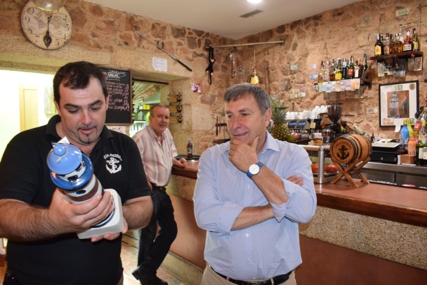 Manuel Ruiz acudió en persona a los locales afortunados en los tres concursos de Artemar 2017, como sucedió en Casa Patrón, en la céntrica Rúa Santa Uxía, para entregarle a su gerente, Manolo García, la figura de cerámica gallega con forma de faro que le correspondió como ganador del premio de decoración hostelera, tras lograr 50 de los 265 votos emitidos entre un total de 9 establecimientos participantes.