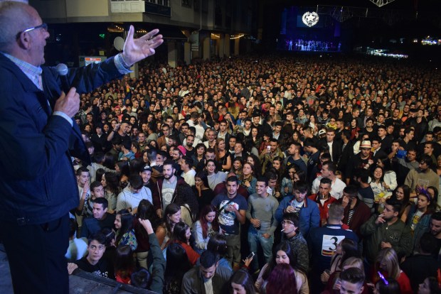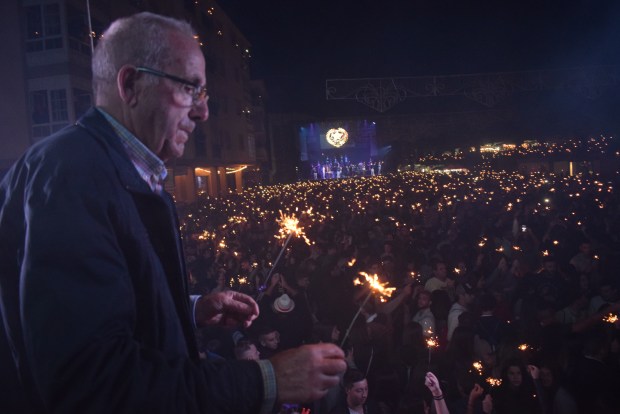 RIANXO – Más de 10.000 personas entonaron A Rianxeira en un campo lleno de bengalas