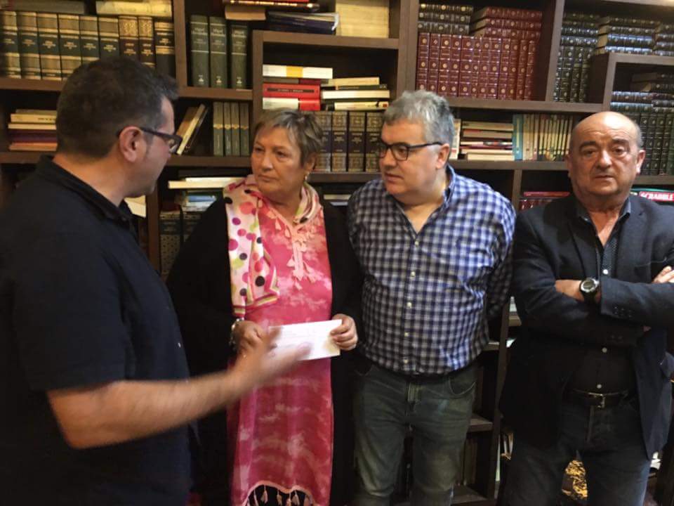 Ocho establecimientos hosteleros de la movida nocturna de Ribeira recaudaron un total de 635 euros en su iniciativa de apoyo al programa de acogida de niños saharauis “Vacaciones en Paz”, que permite que se alejen durante dos meses de verano de las altas temperaturas y duras condiciones que se registran en los campamentos de refugiados de Tindouf (Argelia). En esta acción solidaria se involucraron A Recoveira, O Niño do Cuco, Ventos Vellos, Plaza, Oliver & Stanley, A Galeguiña, O Noite Lounge y el chiringuito Pedra Pateira, que decidieron destinar al referido proyecto el 10% de la recaudación que hicieron en la noche del sábado 2 de septiembre, a partir de las 23.00 horas, por la venta de consumiciones. La responsable de la delegación de Solidariedade Galega co Pobo Saharaui, Maite Isla, acudió este martes a Ribeira para recibir ese donativo en un acto que tuvo lugar en la sede del Ateneo Valle-Inclán, y pudo conversar con alguno de los hosteleros implicados en esta iniciativa, como Tucho Lijó, del bar Plaza, y con uno de los miembros de las familias de acogida de la ciudad, Olegario Sampedro.