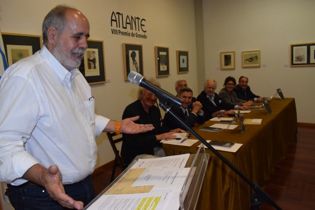 Artes se convirtió este sábado por un día en capital de la Cultura con motivo del acto de entrega de los VIII Premios Atlante de Grabado. Así lo consideró Manuel Ruiz, alcalde y presidente de la fundación del museo ubicado en la parroquia ribeirense, al que definió como un “oasis” de la difusión artística con más de 40.000 obras catalogadas. Agradeció a los que con su trabajo les ayudan a mejorar y expresó su deseo de que “estos siga avante”. El acto arrancó con la actuación del joven pianista Yuri Durán, que interpretó el Preludio 16 de Bach y cerró la ceremonia con la obra romántica Fantasía impronta de Chopín. El mecenas del museo que abrió sus puertas hace 16 años, Javier Expósito, agradeció gestiones y recomendaciones que le dan para ir por el buen camino y se dirigió con emoción en los ojos a su mujer, recordando que juntos superaron tempestades. Tras las intervenciones, llegó la entrega de galardones a Manuel Moreno Morales (Premio Ramiro Carregal, dotado con 5.000 euros), Julio Sánchez Ramos (Premio María del Rosario Martín, de 2.500 euros), Antonio Taboada Bau (Premio de Gravado Galicia, de 2.000 euros), Arvon Edgar Wellen y Alberto Ramírez Hernández, estos dos últimos también recibieron sendos premios en metálicos de 2.500 euros.