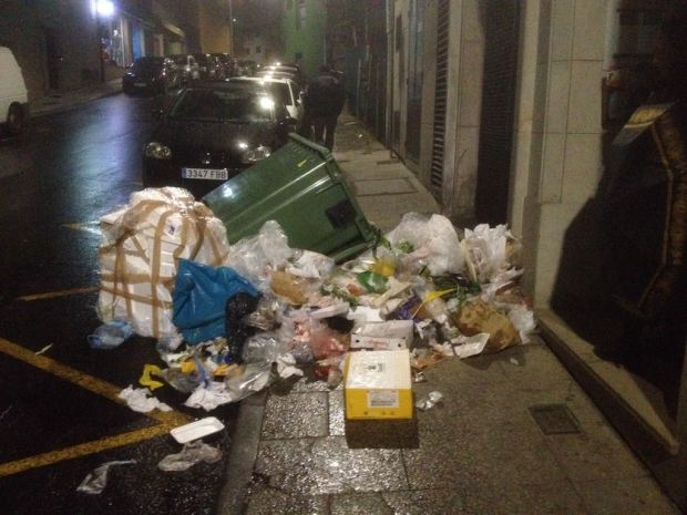 RIBEIRA – Gran malestar por el derrame en una céntrica calle de la ciudad de despojos de comida que son depositados en un contenedor