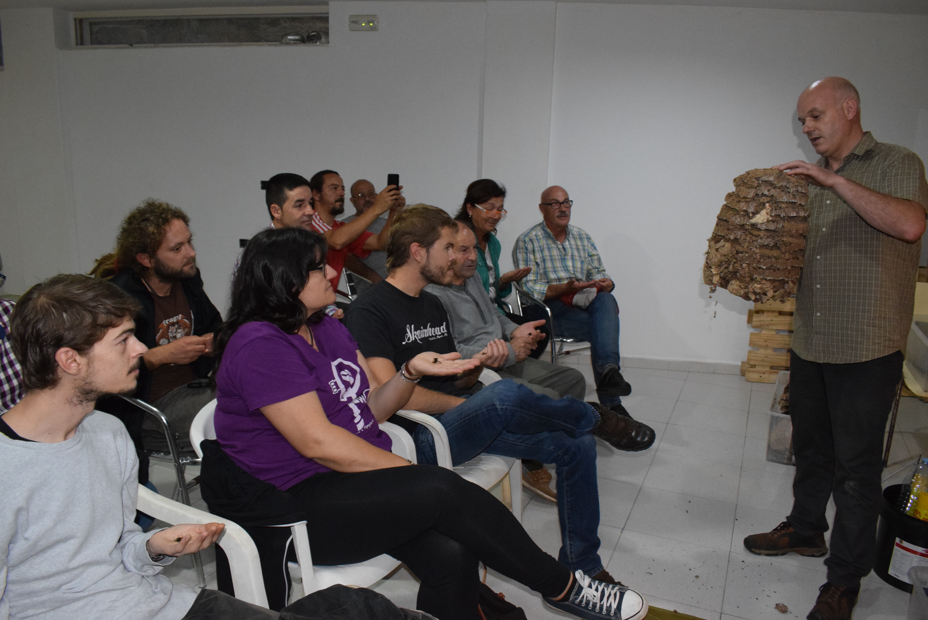 Posiblemente mucha gente no se haya enterado, pero a última hora de la tarde de este viernes se habló en Ribeira y muy bien de uno de los asuntos que más preocupan a los españoles y gallegos, en general, y a los barbanzanos y ribeirenses en particular. No tuvo que ver nada con el referéndum catalán ni con la elección de los festivos locales en la capital barbanzana. En «loqueyotedigo» creemos que se trató de una actividad muy interesante, que no es otra que una charla interactiva en la que se abordó el tema de la avispa velutina, esa especie invasora que a más de un apicultor y agricultor le está quitando el sueño, pudiendo tener los asistentes entre sus manos algunos ejemplares de diferentes tipos de avispas, para diferenciar la velutina de las autóctonas, entre otras cosas. El coruñés Lolo Andrade, que está recorriendo la península ibérica para hablar de este asunto, aceptó la solicitud que le hicieron desde el Foro Ecolóxico do Barbanza y habló largo y tendido sobre la biología de estos insectos, que llevan anidando cuatro años entre nosotros, acostumbrándose tanto a esta zona que incluso ya crean sus nidos en el suelo, y en Galicia hay tanto terreno sin trabajar que provoca que sea un lugar idóneo en donde se puedan reproducir mucho más. Este experto en velutinas indicó que al haberse adaptado a nuestra geografía tenemos que convivir con ellas, pero considera que la ayuda de la gente es muy importante para combatir esa plaga, «pues cada reina eliminada es un nido menos».