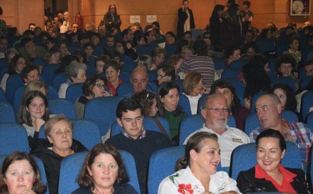 El actor y monologuista colgó el cartel de no hay billetes en la tercera función de la Mostra de Teatro de Ribeira que tuvo lugar el pasado viernes, 3 de noviembre, en el auditorio municipal de la capital barbanzana. Su espectáculo con una revisión de los mejores y más conocidos monólogos, como «As bravas da Arousa (¿Queres kiwis?), «A dobraxe porno», «Galizara», «As grandes frases das nosas avoas e avós», entre otros, despertó una gran expectación entre los vecinos. Tal fue así que, pese a la lluvia, desde incluso antes de las siete de la tarde empezó a haber gente guardando cola para retirar las entradas gratuitas. Estaba previsto que los tickets empezaran a repartirse a las nueve de la noche, pero finalmente se adelantó unos 20 minutos para que el público no tuviera que aguardar durante más tiempo a la intemperie. Fuera del patio de butacas había alrededor de 370 personas, de las que un centenar se tuvieron que quedar fuera debido a que la capacidad máxima es de 270 personas. Una vez se agotaron las entradas, tan sólo pudieron acceder algunas personas para ocupar los asientos que no estaban ocupados en el momento en que iba a dar comienzo la función.