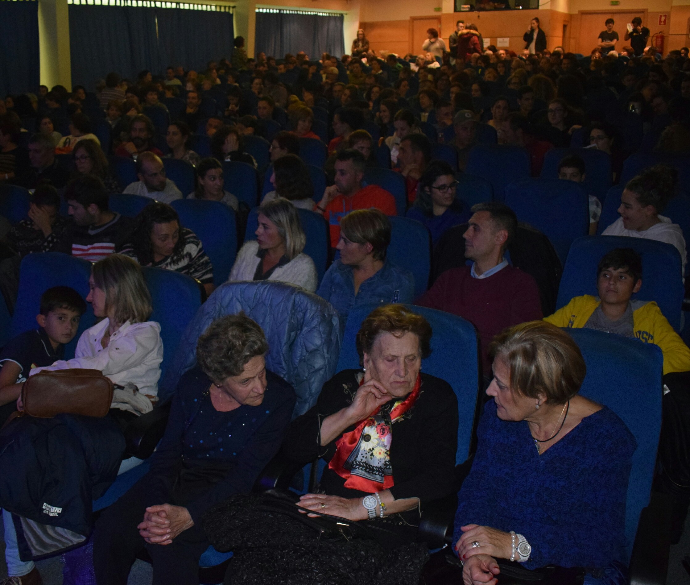 El actor y monologuista colgó el cartel de no hay billetes en la tercera función de la Mostra de Teatro de Ribeira que tuvo lugar el pasado viernes, 3 de noviembre, en el auditorio municipal de la capital barbanzana. Su espectáculo con una revisión de los mejores y más conocidos monólogos, como «As bravas da Arousa (¿Queres kiwis?), «A dobraxe porno», «Galizara», «As grandes frases das nosas avoas e avós», entre otros, despertó una gran expectación entre los vecinos. Tal fue así que, pese a la lluvia, desde incluso antes de las siete de la tarde empezó a haber gente guardando cola para retirar las entradas gratuitas. Estaba previsto que los tickets empezaran a repartirse a las nueve de la noche, pero finalmente se adelantó unos 20 minutos para que el público no tuviera que aguardar durante más tiempo a la intemperie. Fuera del patio de butacas había alrededor de 370 personas, de las que un centenar se tuvieron que quedar fuera debido a que la capacidad máxima es de 270 personas. Una vez se agotaron las entradas, tan sólo pudieron acceder algunas personas para ocupar los asientos que no estaban ocupados en el momento en que iba a dar comienzo la función.