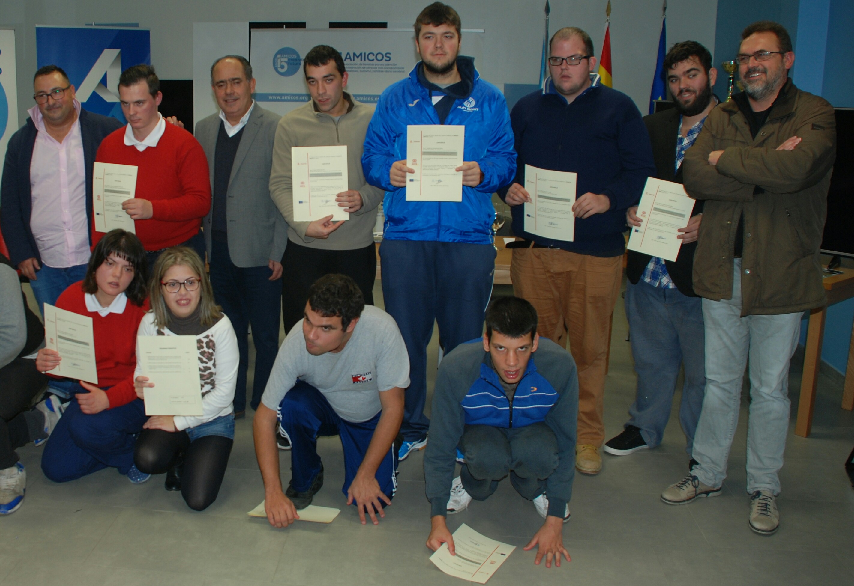 Representantes de varias administraciones y de la asociación Amicos entregaron este viernes, 10 de noviembre, los diplomas de dos cursos, uno de conservación y mejora de montes y otro de auxiliares en viveros, jardines y centros de jardinería. Además, Amicos hizo balance de sus acciones formativas desarrolladas durante 2017, que en total de diez acciones que permitieron la formación laboral de 130 personas con discapacidad, y que permitieron que 45 de ellas lograsen un empleo. Su director xeral, Xoan España, agradeció las actividades y felicitó a todo el cuadro de personal técnico y la directiva por su apuesta por la inserción laboral. Aprovechó para anunciar que Amicos está organizando cuatro cursos más que se desarrollarán hasta final de año, con la colaboración de La Caixa, para un total de 49 alumnos. Habrá un ciclo de curso de operador de carretillas elevadoras (12 plazas), un curso de prevención de riesgos Laborales (10 plazas), un curso de manipulador de alimentos (12 plazas) y otro de alfabetización digital y busca de empleo a través del teléfono móvil (15 plazas). Esta asociación también llevó un curso de desarrollo de itinerios personalizados de inserción social y laboral para 50 alumnos financiado por la Dirección Xeral de Inclusión Social de la Xunta de Galicia, un curso de actividades auxiliares de servicios administrativos y generales para 15 alumnos financiado por la Dirección Xeral de Formación e Emprego y un curso de desarrollo de formación personalizada de inserción social y laboral para 40 alumnos financiado por la Dirección Xeral do Maior e Persoas con Discapacidade de la Xunta de Galicia.