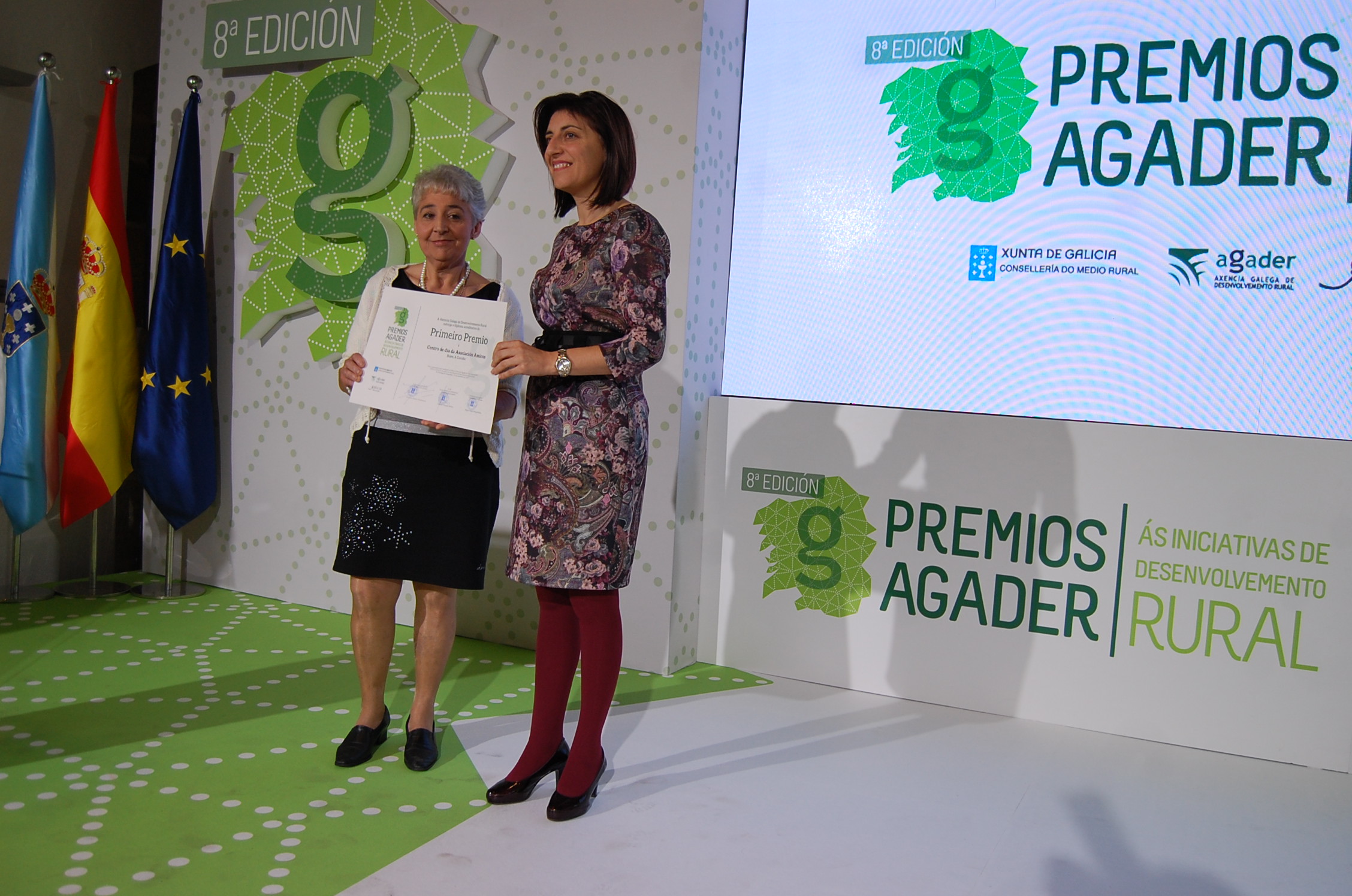 El segundo premio se otorgó a la candidatura “Enxebre, vivenda comunitaria para maiores” de Rodeiro y el tercero fue para el programa Rede Paraugas Alzhéimer presentado por la Federación Galega de Alzhéimer, mientras que el cuarto y el quinto fue para la iniciativa Lary a Cabaniña, de Folgoso do Courel y la Casa do Patrón, en Lalín, respectivamente. El galardón especial para jóvenes fue para la candidatura “A música, factor de desenvolvemento socioeconómico na comarca do Condado”, en Ponteareas.