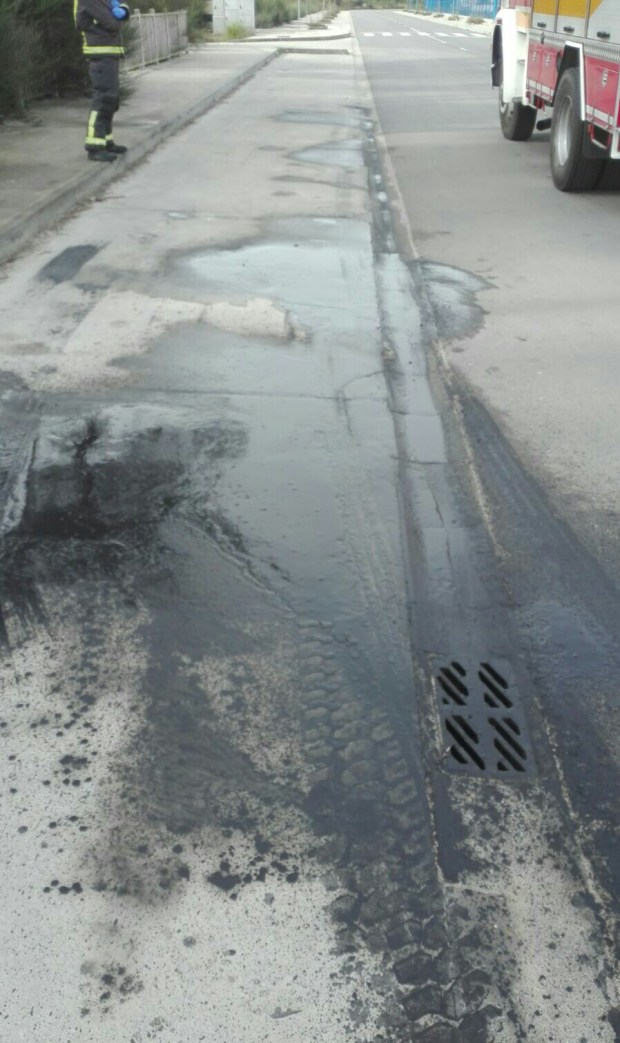 Los Bomberos de Ribeira acudieron en la mañana de este martes, día 21 de noviembre, hasta el polígono industrial de A Tomada para eliminar un vertido de lodo de color negro que ocupaba unos ocho metros cuadrados en el arcén de un vial de dicho recinto. Fueron operarios de la empresa Viaqua los que a las 10.30 horas dieron el primer aviso de ese suceso, pero entendían que se trataba de una mancha de aceite, algo que se pudo confirmar poco después que no era así. La Policía Local acudió hasta el lugar y comprobó que se trataba de un vertido de lodos solubles en agua de origen desconocido, por lo que solicitaron los servicios de los Bomberos para proceder a limpiarlo con agua. Tanto estos últimos efectivos como los agentes municipales peinaron el parque empresarial y su entorno pero no encontraron al camión causante del vertido, ni tampoco vieron más vertidos.