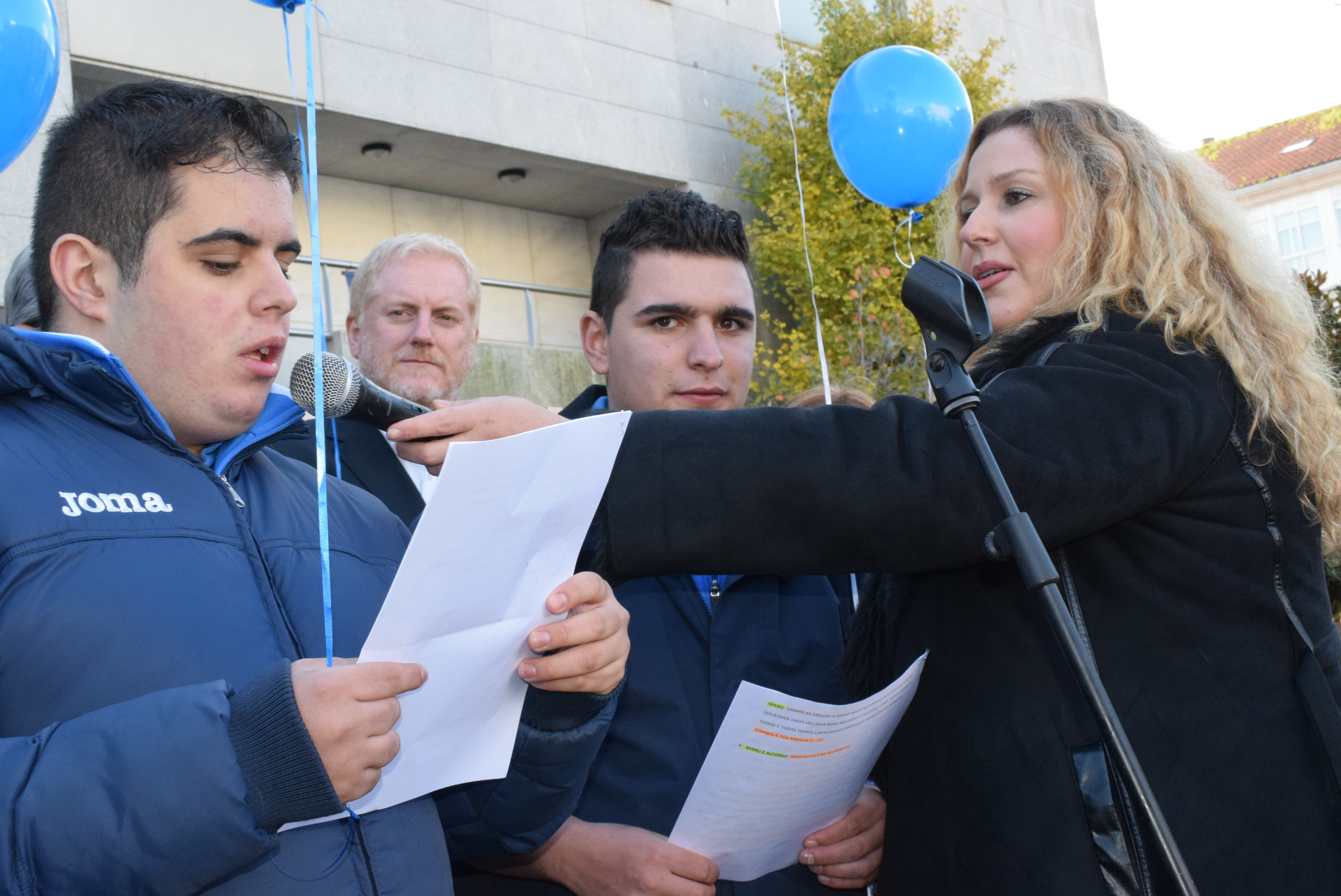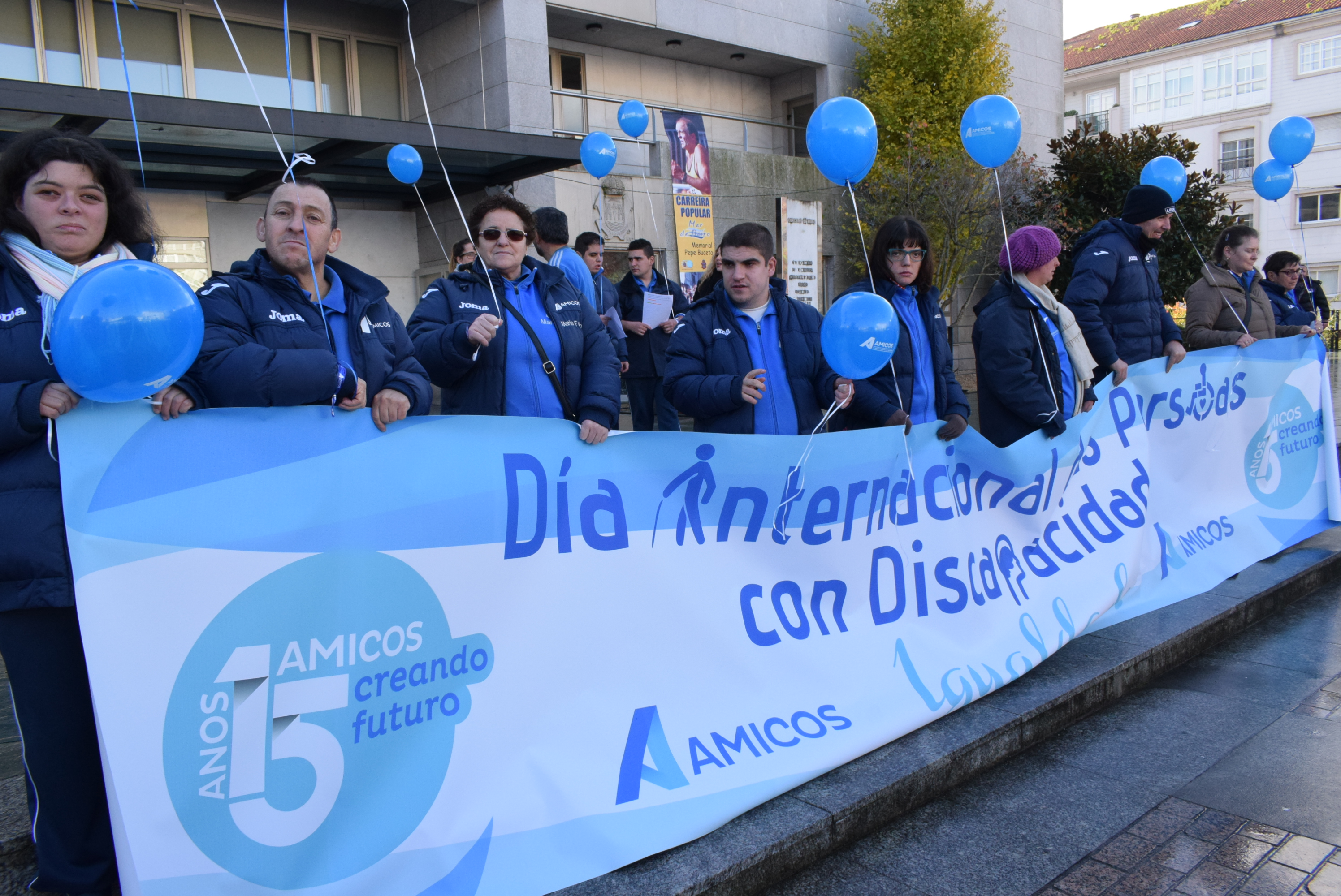 La Praza de Galicia, en Boiro, acogió este viernes el acto de la asociación Amicos para celebrar el Día Internacional das Persoas con Discapacidad, con participación de usuarios y autoridades, a los que se sumaron 200 alumnos de los colegios Santa Baia y Praia Xardín. Alfonso Pérez y Manuel García, del Centro de Educación Especial (CEEPR) de Ribeira, leyeron un manifiesto que empezó de manera muy especial, al relatar situaciones de la vida cotidiana en las que las personas con discapacidad o capacidades diferentes tienen problemas de accesibilidad, pero pese a los avances conseguidos aún quedan muchas barreas. El segundo de ellos se refirió a que cuando fue al teatro con una amiga en silla de ruedas, tras comprar la entrada ella no pudo entrar a ver la función, mientras que el primero comentó algo similar que le sucedió al acudir con un grupo de amigos a ver una película al cine y al no estar subtitulada uno de ellos que es sordo no pudo seguirla. A continuación recordaron que todas las personas son capaces para hacer muchas cosas si les dan la oportunidad de hacerlas. Manuel pidió «miradas de respeto» y el tiempo y la atención suficiente para que las personas con discapacidad tengan oportunidad de dar u opinión y decidir por ellas mismas, y Alfonso reclamó que «cando nos facemos maiores queremos que nos traten como persoas adultas» y dio las gracias a todas las personas que los están ayudando a que la sociedad sea cada vez más inclusiva.