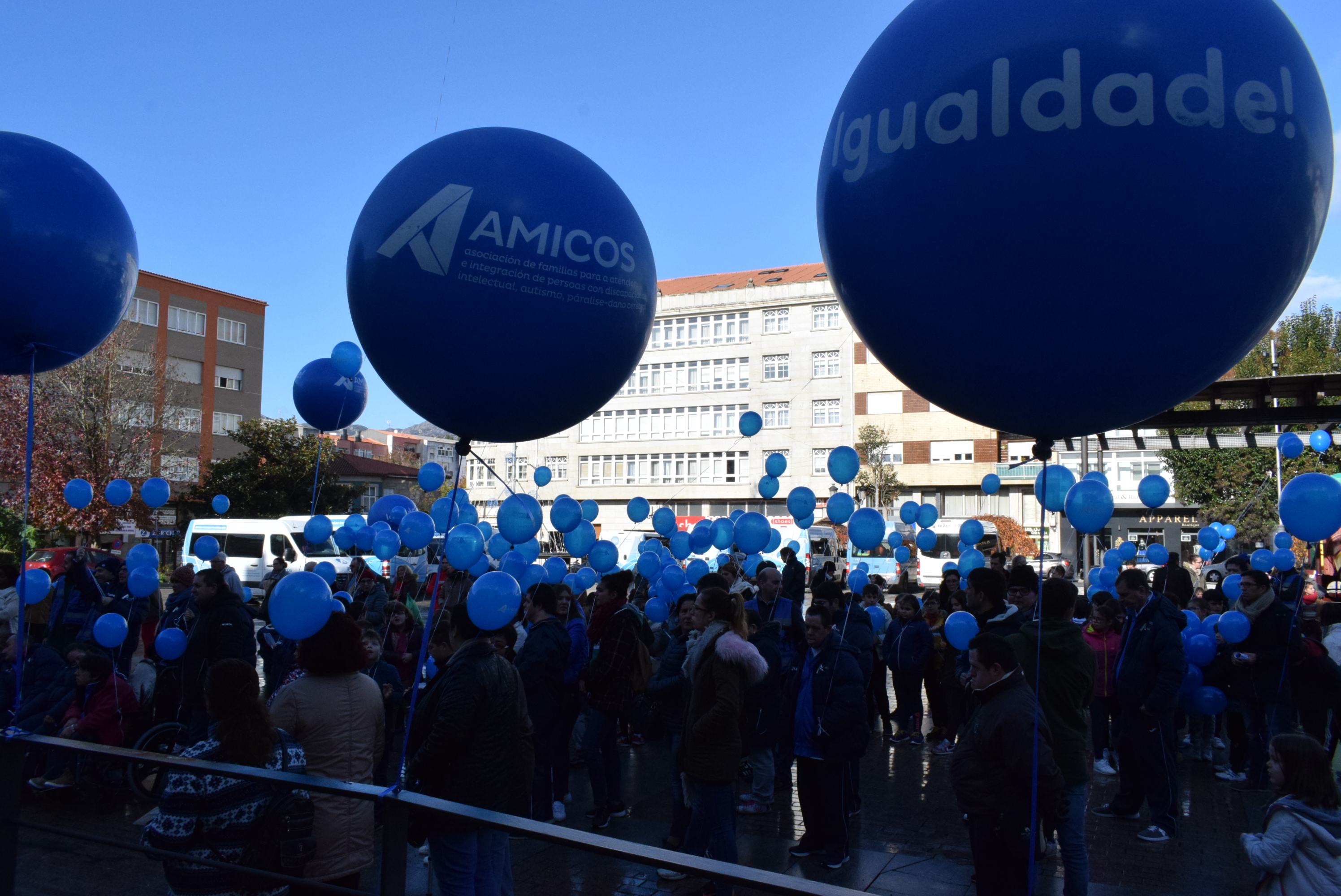 «Desexamos formar parte dunha sociedade que nos mire de fronte, porque somos persoas e temos os mesmos dereitos e deberes que o resto da xente». Esta fue otra de las reivindicaciones que formaron parte del manifiesto de Amicos en el Día Internacional de las Personas con Discapacidad en un acto en el que los participantes juntaron sus voces para reclamar ese «cambio de mirada» de la sociedad y una apuesta eficaz por la igualdad. Los alumnos de los colegios Santaa Baia y Prai Xardín compartieron juegos especialmente pensados para fomentar la inclusión con los estudiantes del CEEPR de Amicos, como carreras en silla de ruedas, pruebas con lenguaje de signos o juegos con los ojos vendados. De ese modo, los niños de los centros de enseñanza ordinaria pudieron meterse en la piel y entender mejor la realidad de los que tienen algún discapacidad intelectual, física o sensorial. Luego intervinieron las autoridades, entre las que destacó la directora xeral de Maiores e Persoas con Discapacidade, Fabiola García Martínez, que calificó a Amicos como «entidade referente non só no Barbanza senón en toda Galicia», y que se refleja en la reciente concesión del Premio Agader de Desenvolvemento Rural, y felicitó a sus trabajadores y a las familias por el esfuerzo que realizan. Y comprometió sacar nuevas plazas para personas con discapacidad y que seguirá a «traballar man con man» con entidades que les prestan apoyo. Y la presidenta de Amicos, Esther Vidal, pidió en este día un apoyo especial para las familias de las personas con discapacidad y reivindicó su derecho a ser felices. Este acto reivindicativo remató con la tradicional suelta de globos de color azul, propio de la entidad organizadora, y que sirvió para hacer una marea azul destinada a demandar, un año más, un mundo más equitativo y solidario con las personas con diversidad funcional.