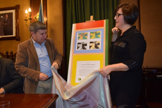 La asociación Ámbar inauguró a última hora de la tarde de este viernes en la casa consistorial de Ribeira, con un salón de plenos abarrotado como pocas veces se ha visto, la exposición con 15 obras elaboradas en su taller de arte -combinan texto, fotografía y pintura-, y con la que conmemora sus «35 años de vida e emoción», en los que se encontró con muchas barreras, pero que con esfuerzo ha logrado una mayor accesibilidad, pese a que todavía queda mucho camino por andar, según manifestó su presidenta, Milagros Rey. Por su parte, el alcalde ribeirense, Manuel Ruiz, que recordó como antes la gente los llamaba «minusválidos», después «discapacitados» y ahora «persoas con diversidade funcional», expresó su orgullo de que la «casa de todos» de cabida a esta exposición que recoge en una selección de imágenes parte de la historia de una entidad que se ha esforzado por lograr la eliminación de barreras arquitectónicas, y puso algunos ejemplos de edificios y espacios públicos en los que no hace mucho se actuó en ese sentido, como en el departamento de tesorería municipal -curiosamente ese departamento acogió el aperitivo que se sirvió tras la inauguración- o el conservatorio municipal. También intervino el delegado territorial, Ovidio Rodeiro, que incidió en la gran labor que ha desarrollado Ámbar en sus siete lustros de existencia y que la sitúa a la vanguardia de la inclusión social. Todos ello hicieron votos por que dentro de otros 35 años más se puedan volver a reunir en el mismo lugar para esa celebración.