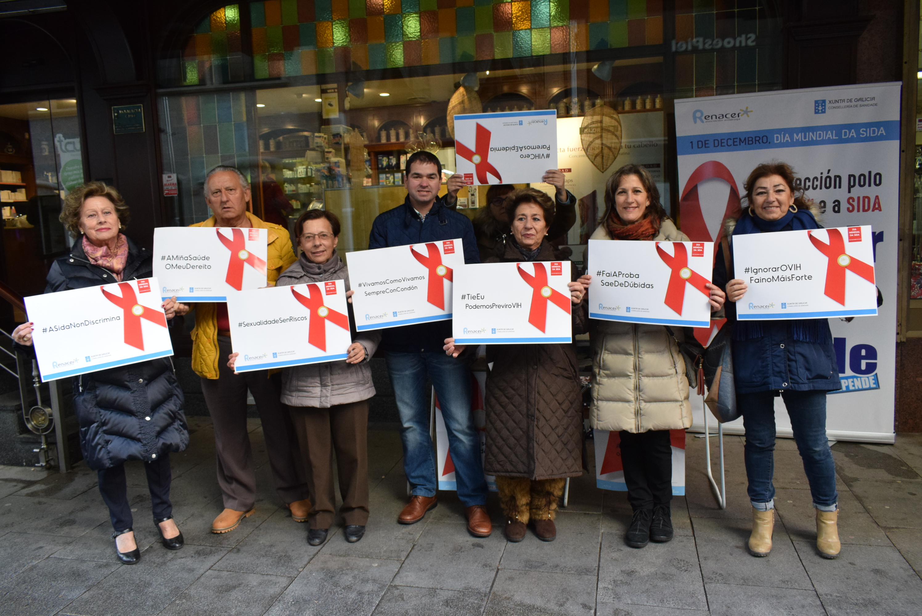 Renacer conmemoró el Día Mundial del Sida con mesas informativas por la mañana en el tramo peatonal de la Rúa de Galicia, en el casco urbano ribeirense y durante el recreo en los centros educativos. Además del reparto de folletos, lazos y preservativos, las personas que se encontraban al frente de las mismas invitaron a que la gente se hiciera fotos con carteles en los que había mensajes preventivos, que luego se compartieron en redes sociales para darles una mayor difusión. Estas actividades dan continuidad a los talleres afectivo-sexuales que Renacer desarrolla con los jóvenes en los centros de enseñanza de Ribeira y Porto do Son, intentando prevenir embarazos no deseados y enfermedades de transmisión sexual. El objetivo es intentar concienciar a los jóvenes de la importancia de la prevención en la lucha contra esta enfermedad y la de involucrarse en su detección, teniendo en cuenta que la infección del VIH se transmite mayoritariamente por vía sexual. El mensaje que se transmitirá irá especialmente dedicado a subrayar la importancia del derecho a la salud y los desafíos a los que se enfrentan las personas que viven con el virus para satisfacer ese derecho. Desde Renacer indican que han pasado más de 30 años desde que se produjeron los primeros diagnósticos de Sida en el mundo y durante todo este tiempo se realizaron grandes progresos en la lucha contra esta infección, pero según datos del año pasado aún hay 36,7 millones de personas en todo el mundo que viven con el VIH.