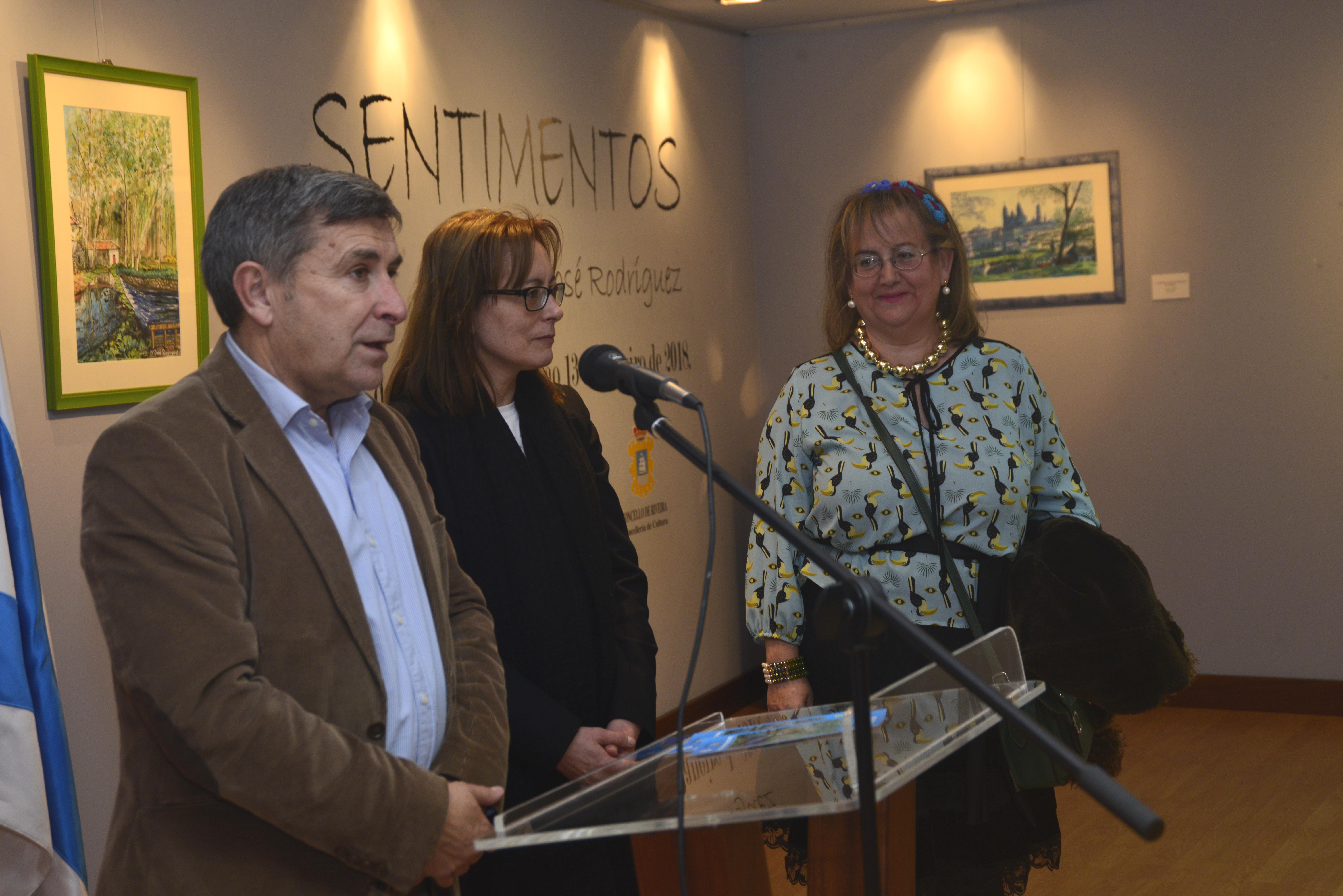 Un total de veintitrés pinturas y once esculturas conforman la muestra titulada “Sentimentos” de María José Rodríguez que se exhiben desde la noche del viernes en la sala de exposiciones del centro cultural Lustres Rivas de Ribeira. La autora de todas esas obras, que es coruñesa de nacimiento pero que se siente vilagarciana de adopción, estuvo arropada en el acto inaugural por el alcalde ribeirense, Manuel Ruiz Rivas, y por la concejala del departamento de Cultura, Herminia Pouso, así como por algunas decenas de personas que se quisieron acercar hasta las referidas instalaciones municipales en una jornada en la que el que quiso asistir a todos los actos programados para la jornada tuvo que hacer encaje de bolillos, sobre todo a última hora del día.
