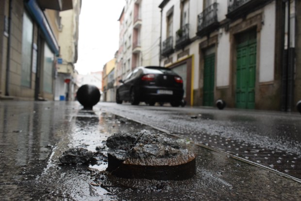 Una furgoneta de reparto provocó a las diez de la mañana de ayer, la rotura de un bolardo en la Rúa de Galicia, a la altura de Calzados Horacio. Al parecer, la joven que conducía, que procedía de la Rúa Canarias, perdió el control del mismo al dar la curva a la izquierda e impactó con la citada bola metálica, que salió despedida a 30 metros. El vehículo se subió a otro bolardo, en el que quedó enganchado.