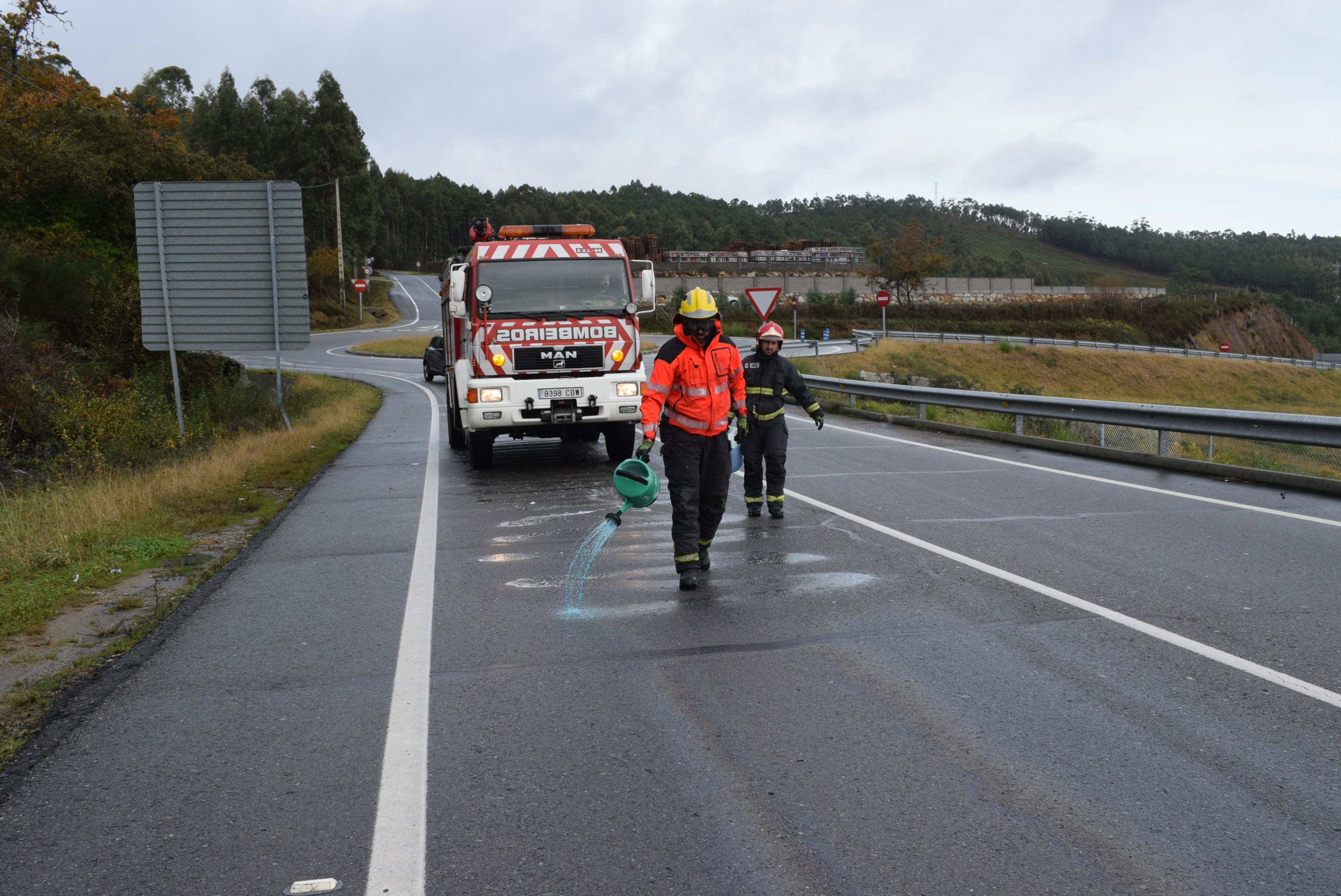 RIBEIRA – Eliminadas manchas de gasóleo que aparecieron entre las rotondas de la salida de la Autovía do Barbanza en A Carballa (Palmeira)