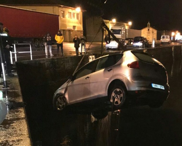 RIANXO – Un coche cae en el muelle de Rianxo al no ver la conductora por estar el parabrisas empañado