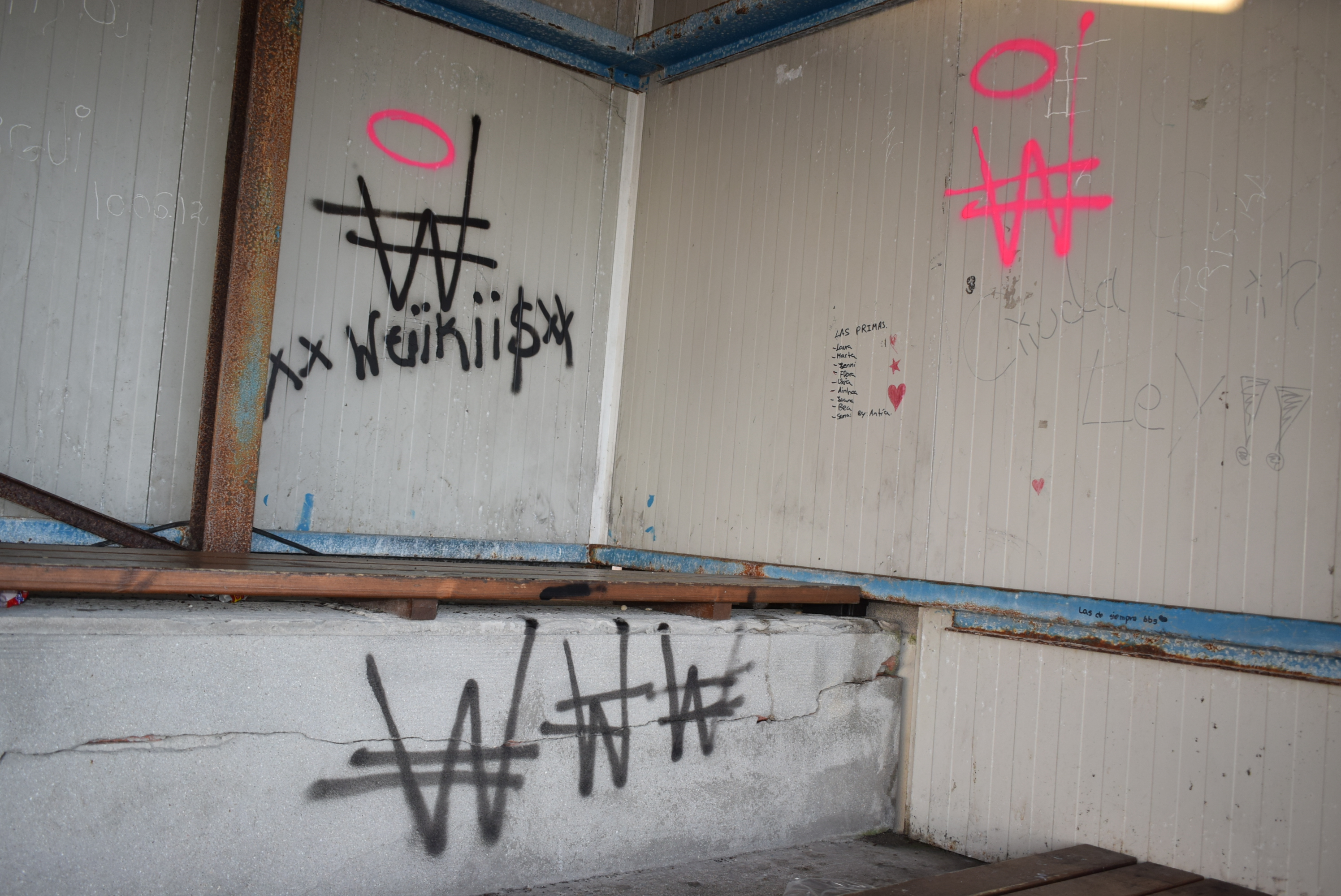 RIBEIRA – Denuncian pintadas en las gradas y puerta del campo de fútbol de A Tasca y el conservatorio de Aguiño
