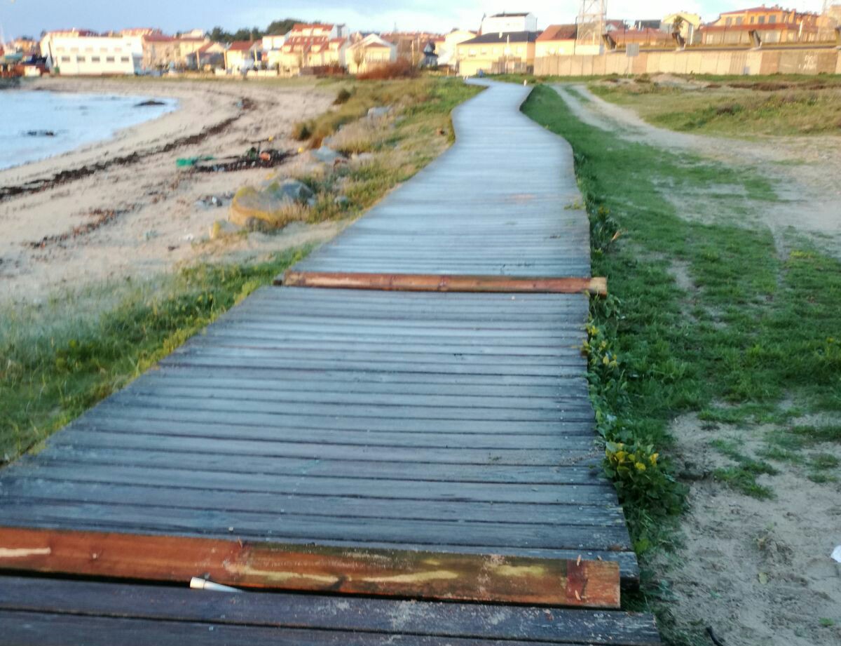 RIBEIRA – Arrancan unas tablas de la pasarela de madera entre A Tasca y O Carreiro, en Aguiño